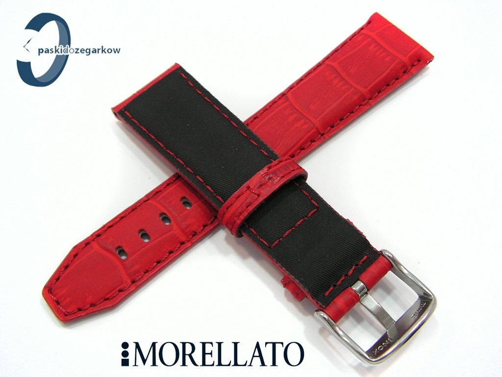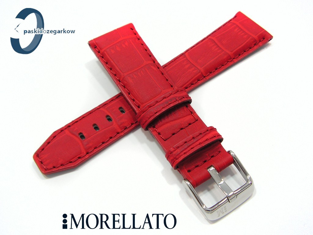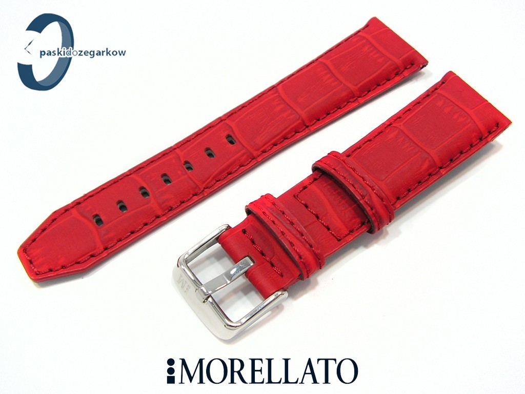 Pasek do zegarka SOCCER producenta Morellato z kolekcji Sport wykonany ze skóry powleczonej gumy - taki wyrób uzyskujemy w procesie wstrzykiwania w skórę pod ciśnieniem gumy, dzięki temu uzyskujemy powłokę, po której woda spływa, nie wsiąka, myszówka wykonana z wodoodpornego materiału w kolorze czarnym, ten pasek jest rozwiązaniem dla osób, które chcą nosić pasek skórzany klasyczny, ale z cechami paska sportowego - wodoodporność i wytrzymałość - pasek w kolorze czerwonym, na pasku tloczony wzór aligatora, matowy, przeszyty czerwoną nicią, sprzączka wykonana ze stali nierdzewnej, szerokość paska 22 mm, przy sprzączce 18 mm, zapinany na teleskopy.