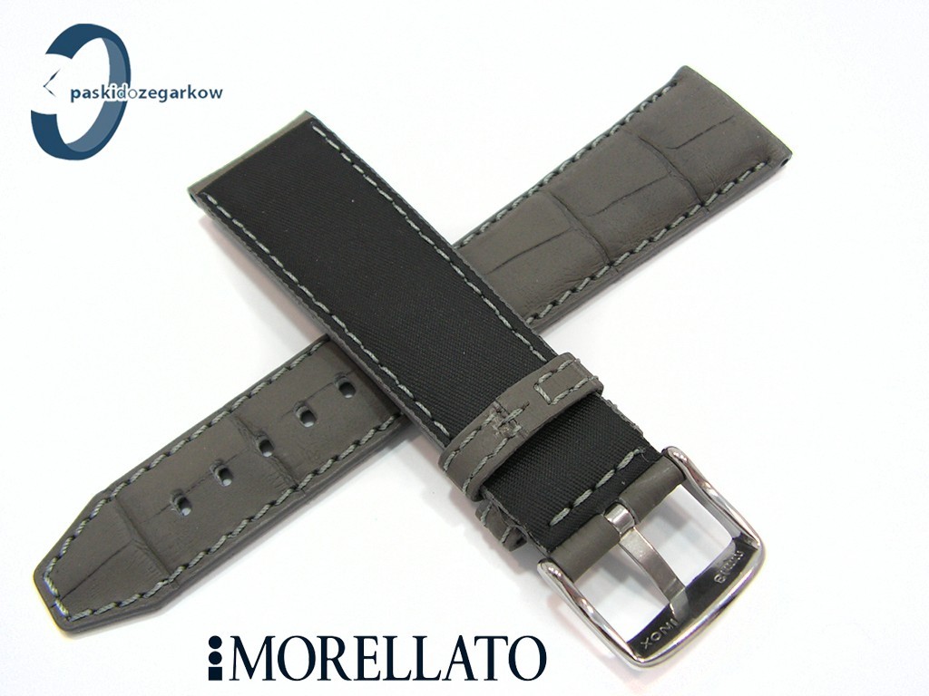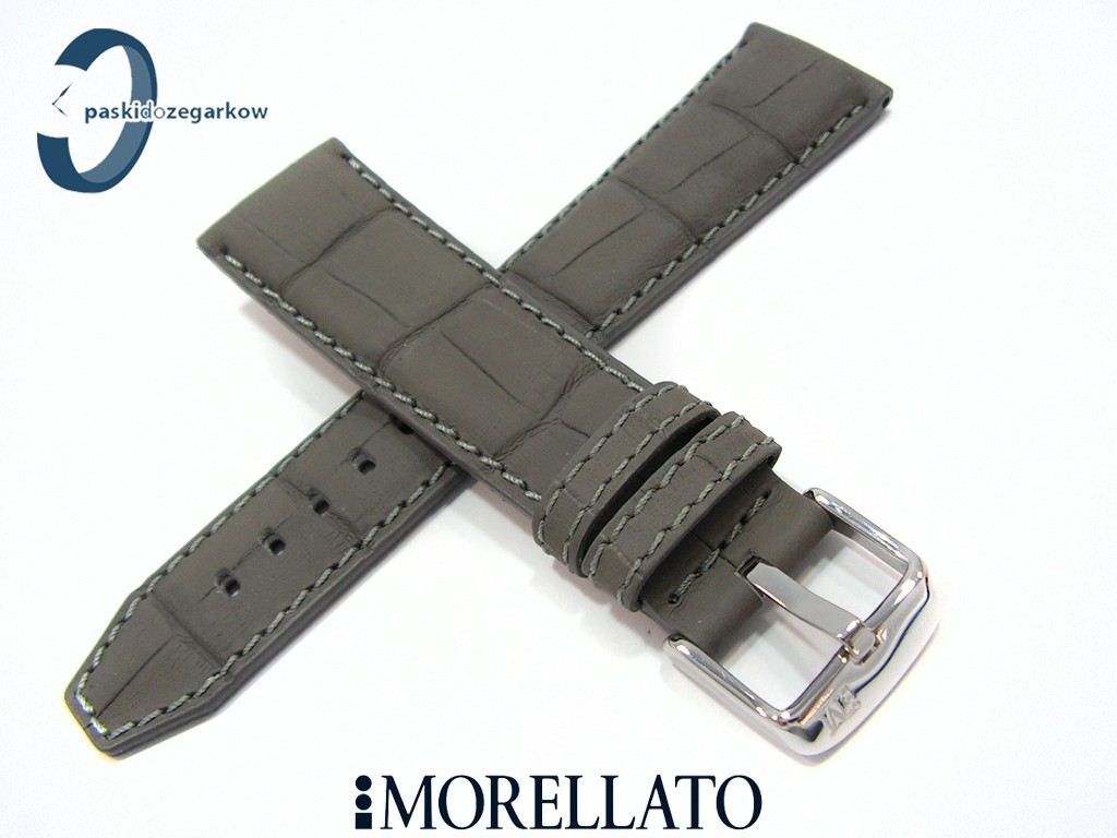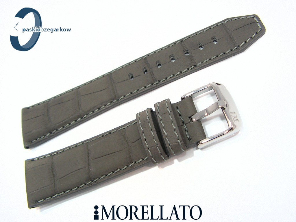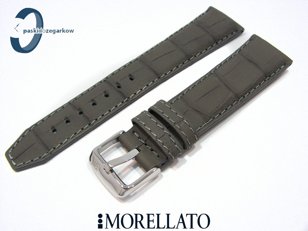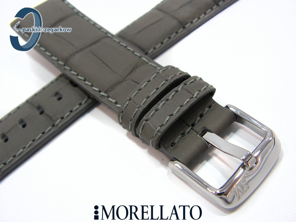 Pasek do zegarka SOCCER producenta Morellato z kolekcji Sport wykonany ze skóry powleczonej gumy - taki wyrób uzyskujemy w procesie wstrzykiwania w skórę pod ciśnieniem gumy, dzięki temu uzyskujemy powłokę, po której woda spływa, nie wsiąka, myszówka wykonana z wodoodpornego materiału w kolorze czarnym, ten pasek jest rozwiązaniem dla osób, które chcą nosić pasek skórzany klasyczny, ale z cechami paska sportowego - wodoodporność i wytrzymałość - pasek w kolorze szarym, na pasku tloczony wzór aligatora, matowy, przeszyty szarą nicią, sprzączka wykonana ze stali nierdzewnej, szerokość paska 22 mm, przy sprzączce 18 mm, zapinany na teleskopy.
