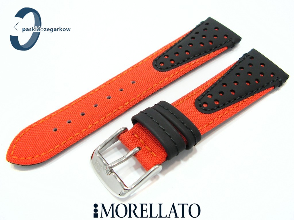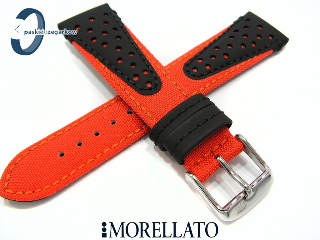 Pasek VOLLEY CORDURA od producenta MORELLATO skórzano-materiałowy w kolorze czarno-pomarańczowym, myszówka skórzana w kolorze czarnym, sprzączka wykonana ze stali nierdzewnej, wodoodporny, wytrzymały, szerokość paska 22.