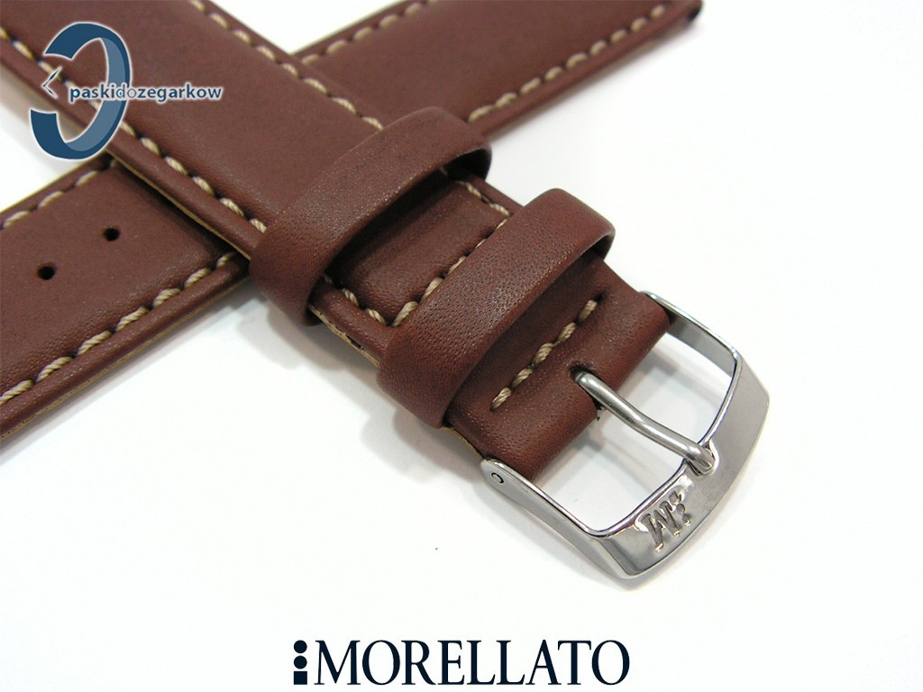Pasek do zegarka producenta MORELLATO CASTAGNO z kolekcji GREEN COLLECTION skórzany w kolorze brązowym z jasnym przeszyciem, gładki, sprzączka wykonana ze stali nierdzewnej, szerokość paska 22 mm.