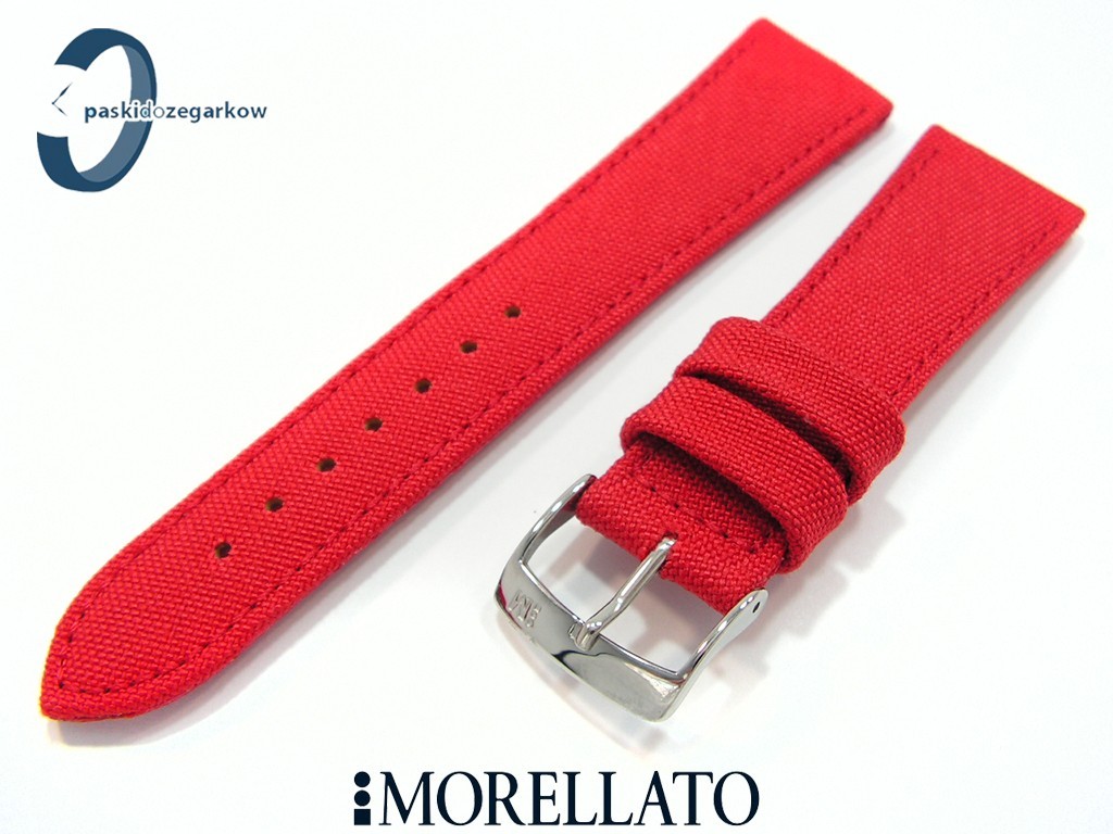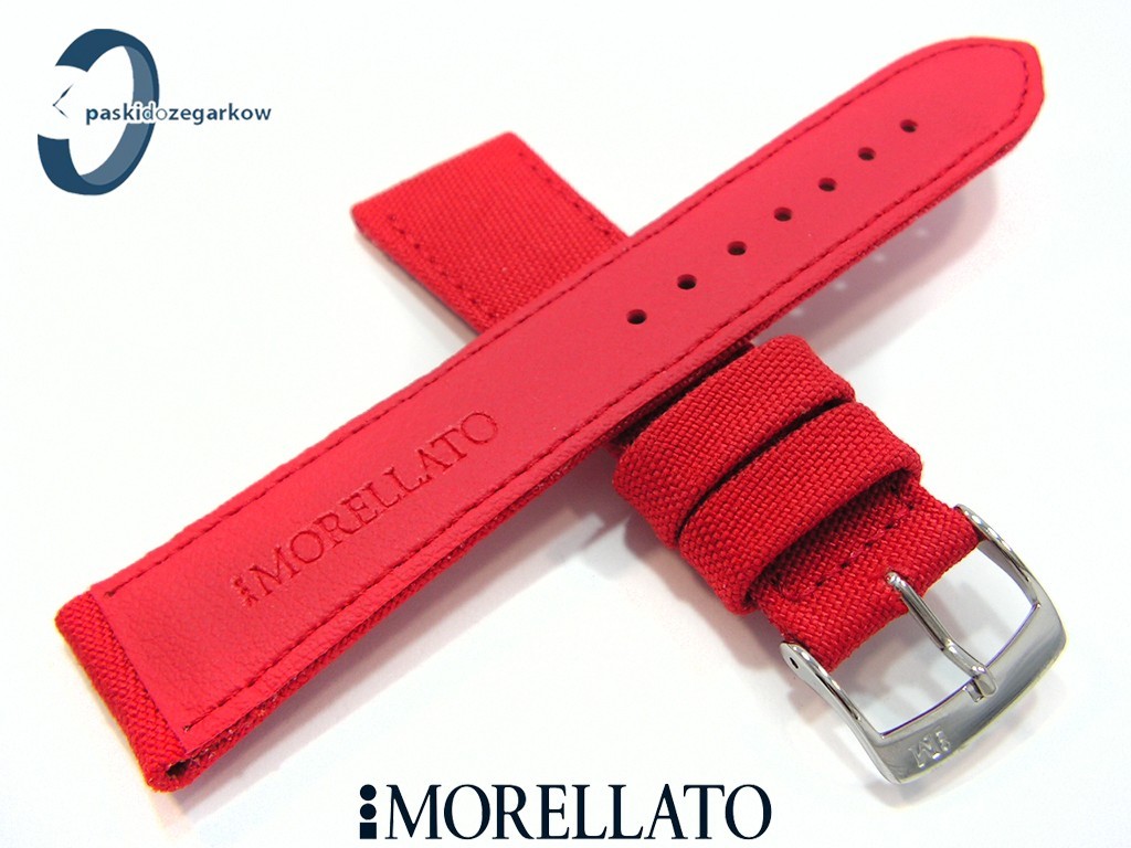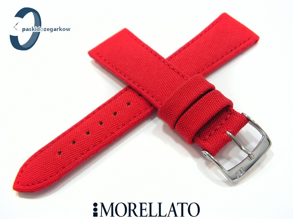 Pasek MORELLATO CORDURA materiałowy czerwony, myszówka wykonana ze skóry w kolorze czerwonym, przeszyty, niewypełniany, wodoodporny, sprzączka wykonana ze stali nierdzewnej, szerokość paska 22 mm, przy sprzączce 18 mm, długość 120/74.