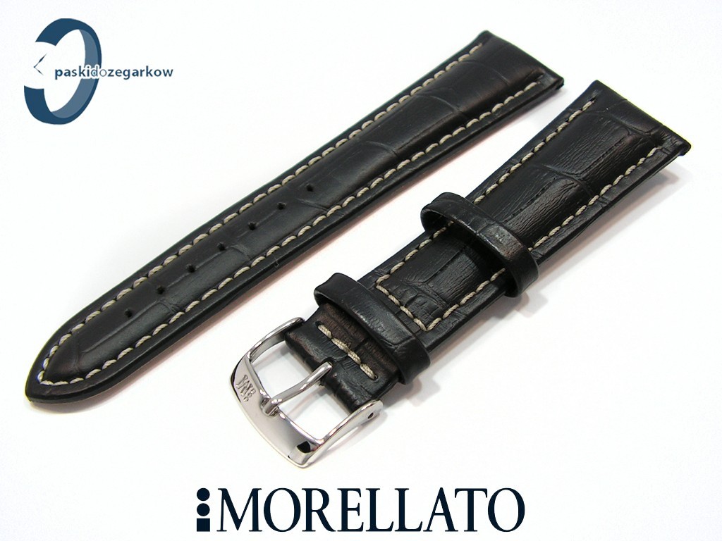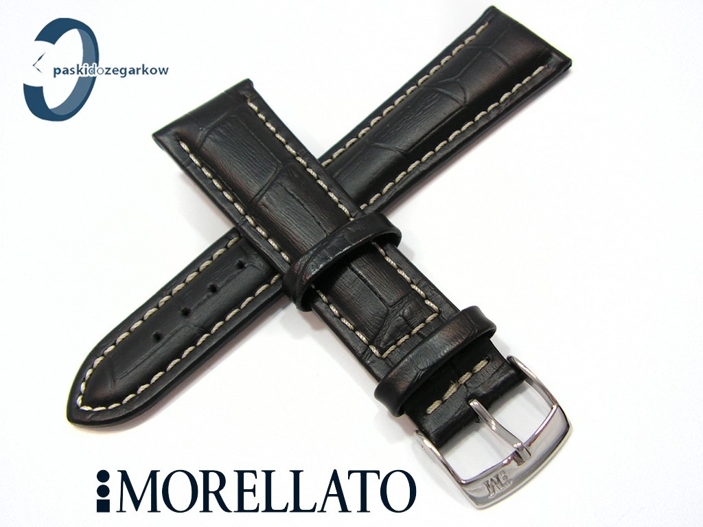 Pasek PLUS od producenta MORELLATO skórzany, w kolorze czarnym, na pasku tłoczony wzór aligatora, przeszyty jasną nicią, wypełniany, sprzączka wykonana ze stali nierdzewnej, szerokość paska 24, przy sprzączce 22, długość 120/80.