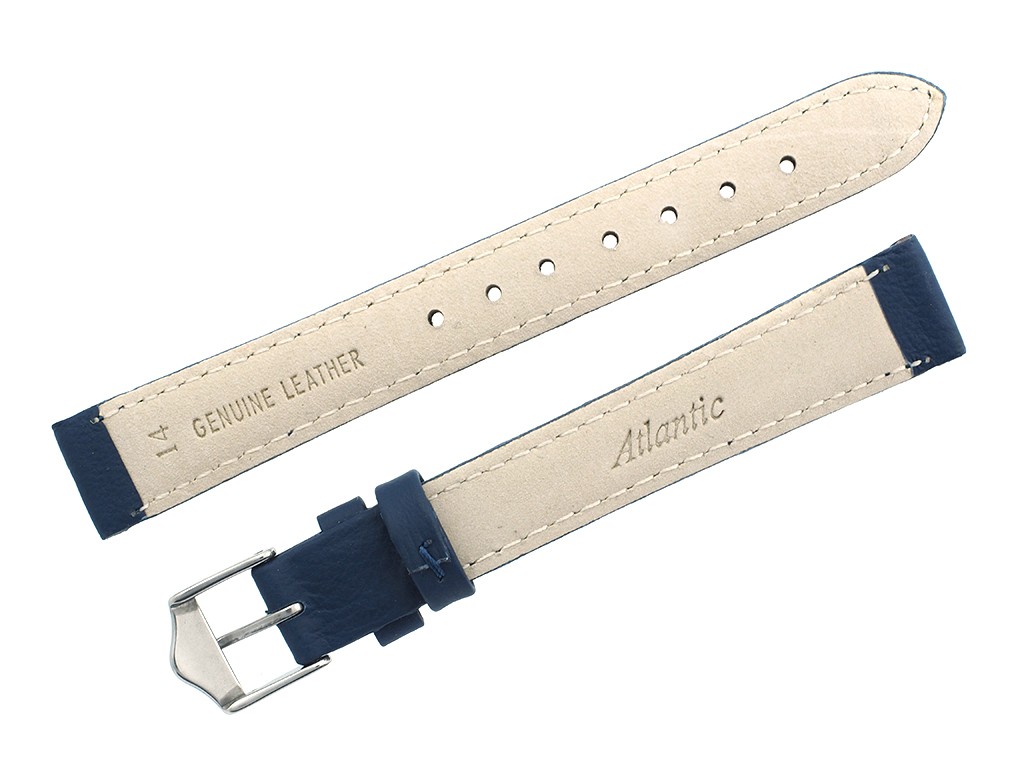 Oryginalny pasek producenta Atlantic w rozmiarze 14 mm, wykonany ze skóry naturalnej w kolorze granatowym, gładki, przeszyty, sprzączka wykonana ze stali nierdzewnej w kolorze srebrnym, z wybitym logo Atlantic.