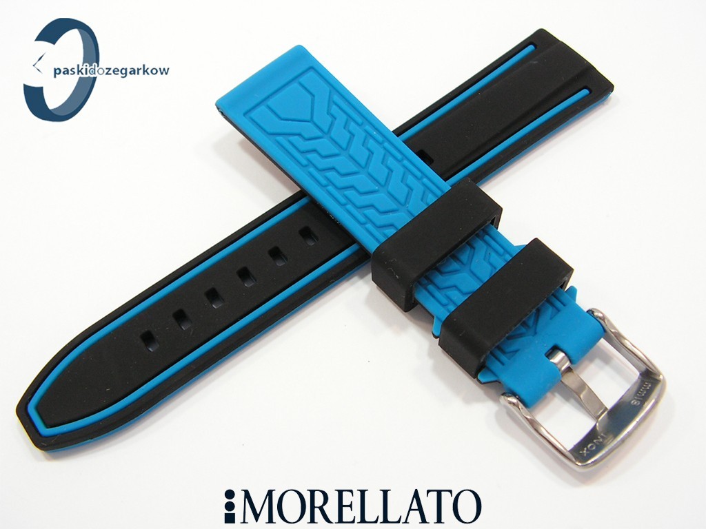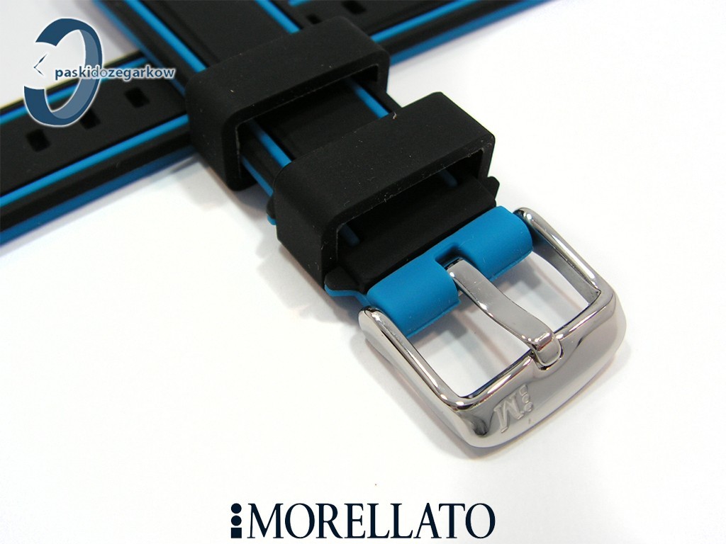 Pasek TARIM od producenta MORELLATO wykonany z silikonu ( 100% oryginalnego silikonu), czarno- niebieski, sprzączka wykonana ze stali nierdzewnej, szerokość paska 20, wodoodporny.