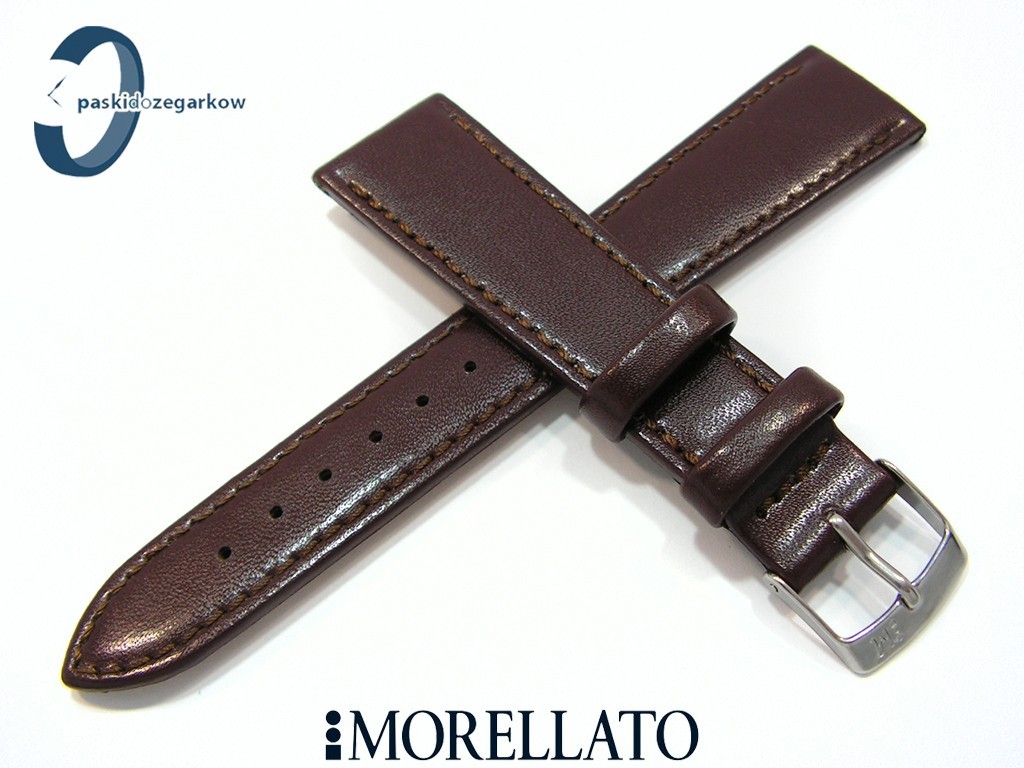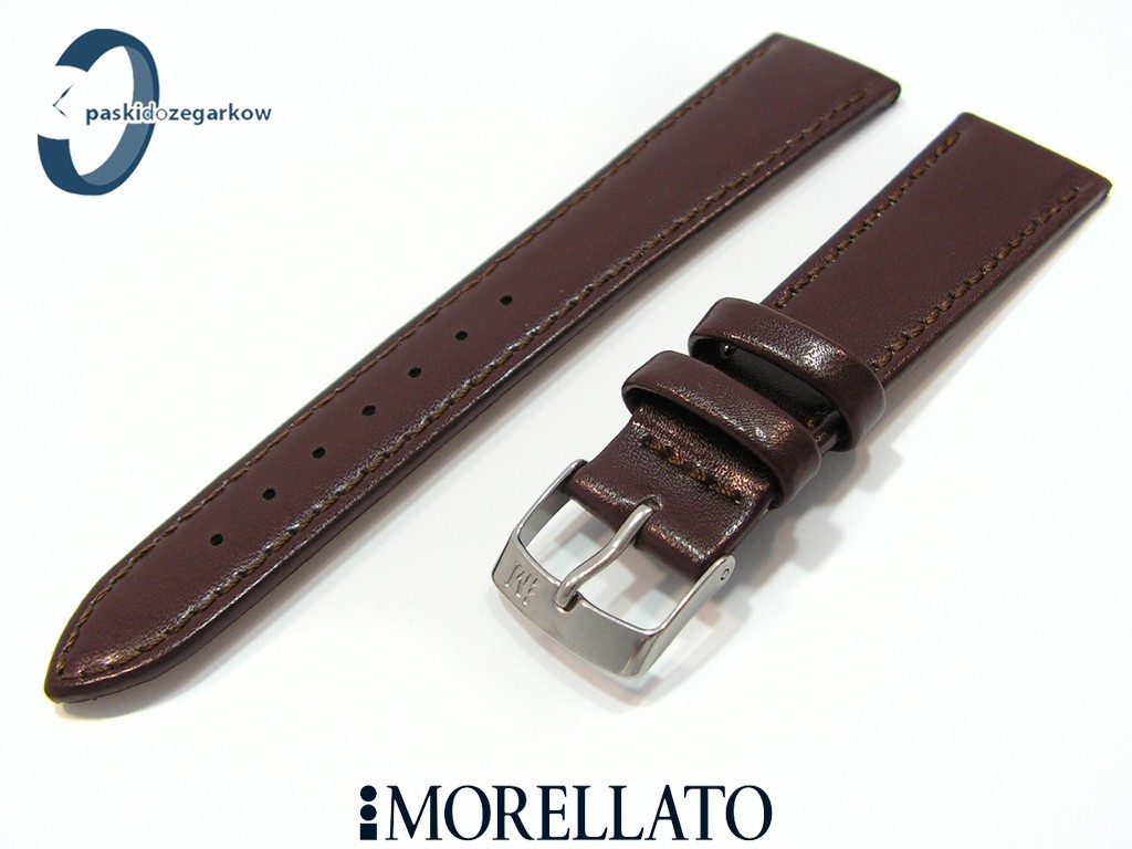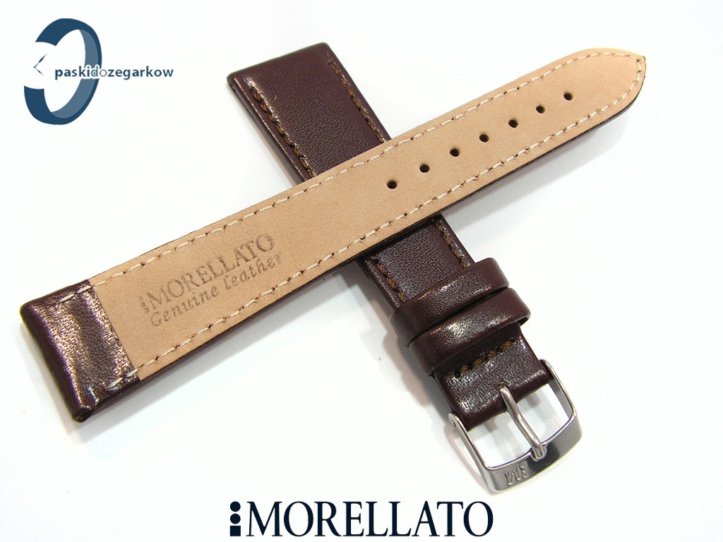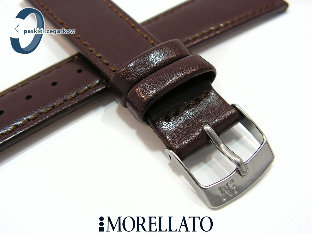 Pasek do zegarka SYDNEY od producenta MORELLATO skórzany, półmat, ciemny brąz, gładki, przeszyty, sprzączka wykonana ze stali nierdzewnej, długość 120/74, szerokość paska 20 mm , przy sprzączce 18 mm.