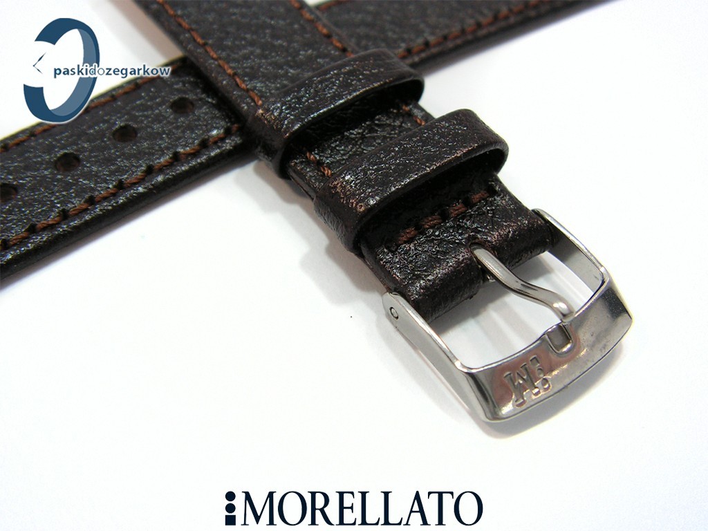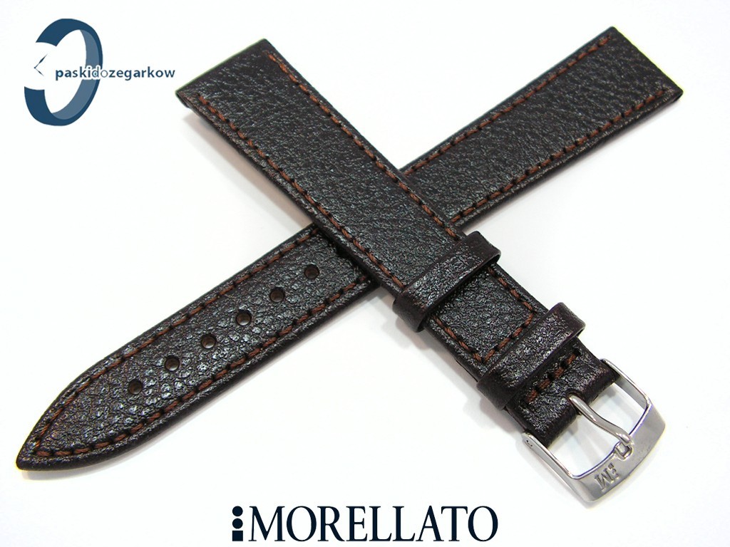 Pasek DUBLINO XL od producenta MORELLATO w rozmiarze XL w kolorze ciemnym brązie, skórzany o fakturze lamy, przeszyty, niewypełniany, z lekkim połyskiem, sprzączka wykonana ze stali nierdzewnej, szerokość paska 20 mm, przy sprzączce szerokość 16 mm, długość 133/87.