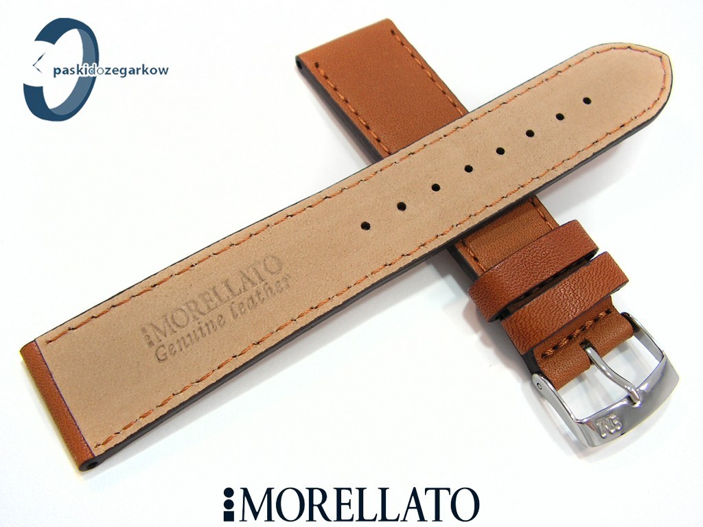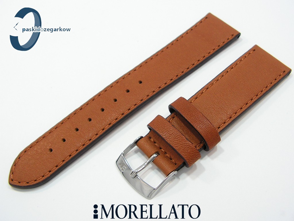 Pasek do zegarka DELTA od producnta MORELLATO wykonany ze skóry w kolorze złoty brąz, gładki,niewypełniany, przeszyty cienką nicią, boki paska w kolorze czarnymsprzączka wykonana ze stali nierdzewnej, szerokość paska 20 mm, przy sprzączce 18 mm, długość 106/71.