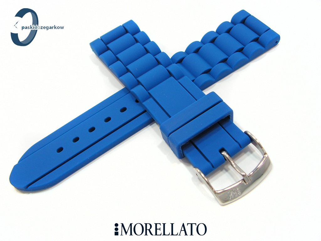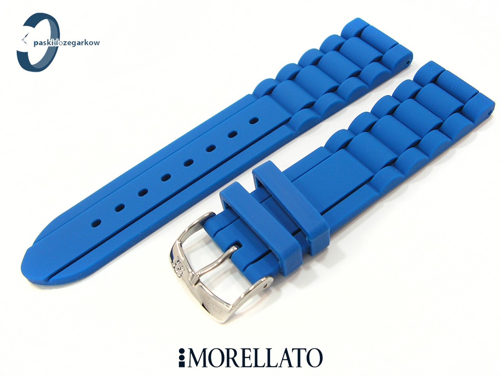 Pasek od producenta MORELLATO wykonany z silikonu w kolorze niebieskim, sprzączka wykonana ze stali nierdzewnej w kolorze srebrnym, szerokość paska 22 mm.