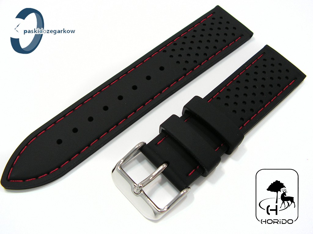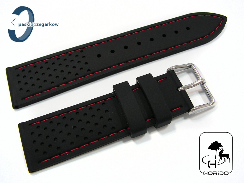 Pasek HORIDO silikonowy czarny z czerwonym przeszyciem 22 mm