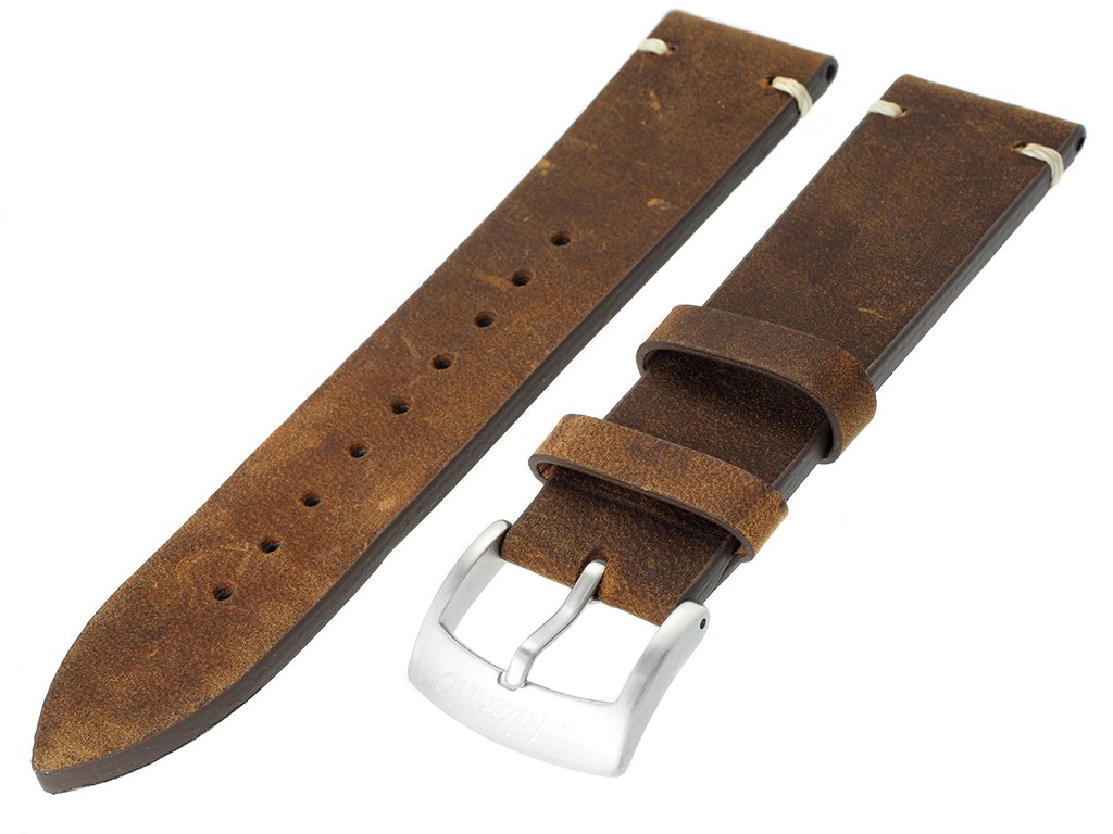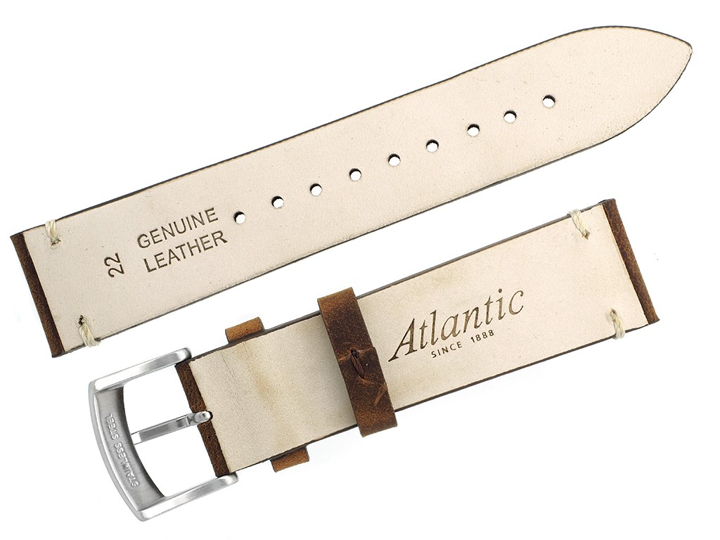 Oryginalny pasek producenta Atlantic do modelu Atlantic Seaflight 70351.41.41R, wykonany ze skóry naturalnej w kolorze brązowym, na pasku ozdobne jasne przeszycia, sprzączka wykonana ze stali nierdzewnej w kolorze srebrnym, z wybitym logo Atlantic.