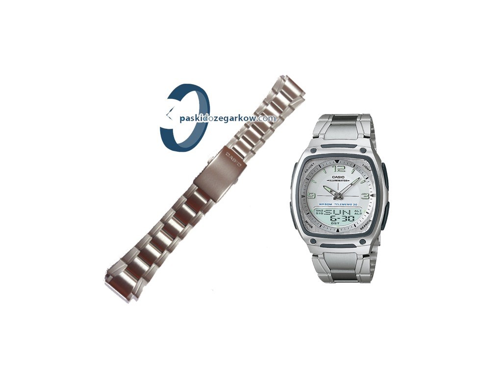 Wyświetl większe Oryginalna bransoleta do zegarka marki Casio AW-81D, AW-81 wykonana ze stali nierdzewnej w kolorze srebrnym, na zapięciu wybity napis Casio.