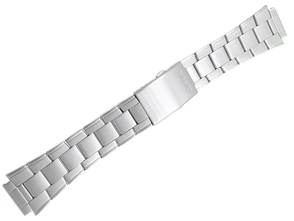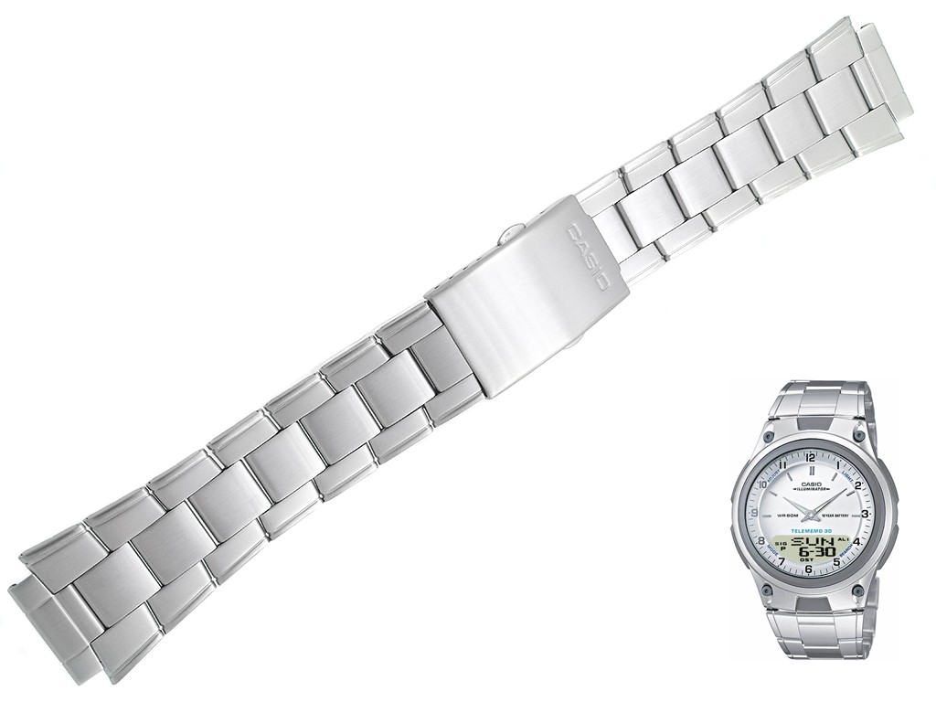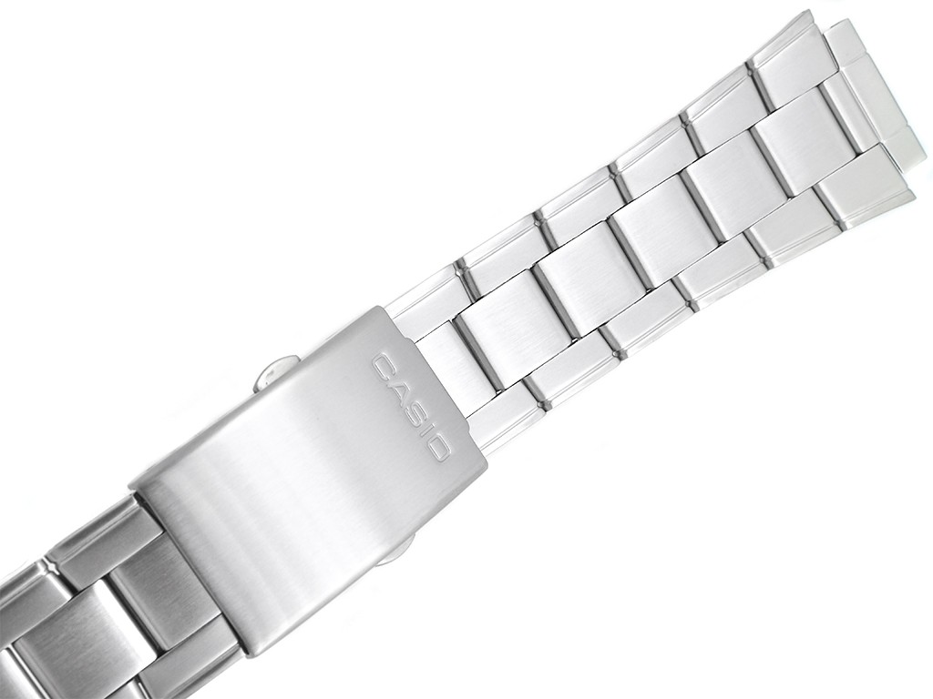 Oryginalna bransoleta do zegarka marki Casio AW-80D, AW-80 wykonana ze stali nierdzewnej w kolorze srebrnym, na zapięciu wybity napis Casio.