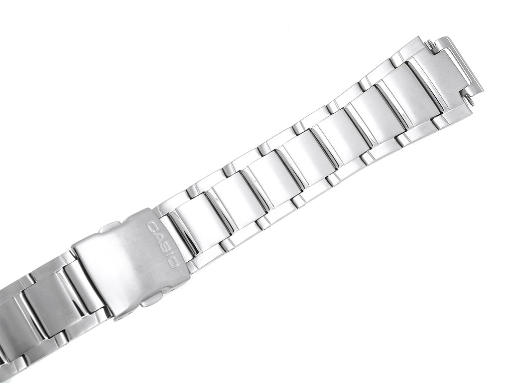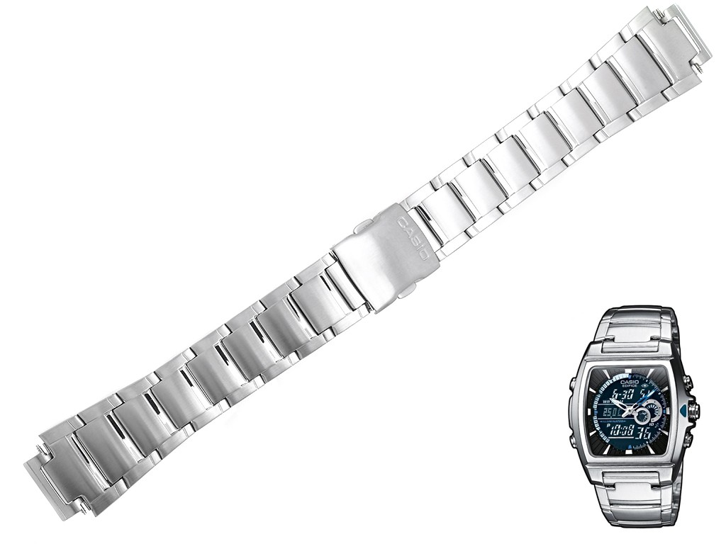 Oryginalna bransoleta do zegarka marki Casio Edifice EFA-120D, wykonana ze stali nierdzewnej w kolorze srebrnym z maskownicami, na zapięciu wybity napis Casio.