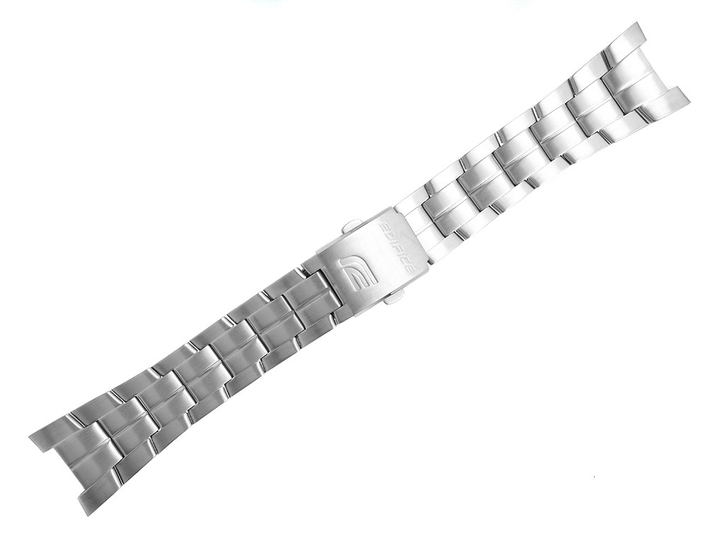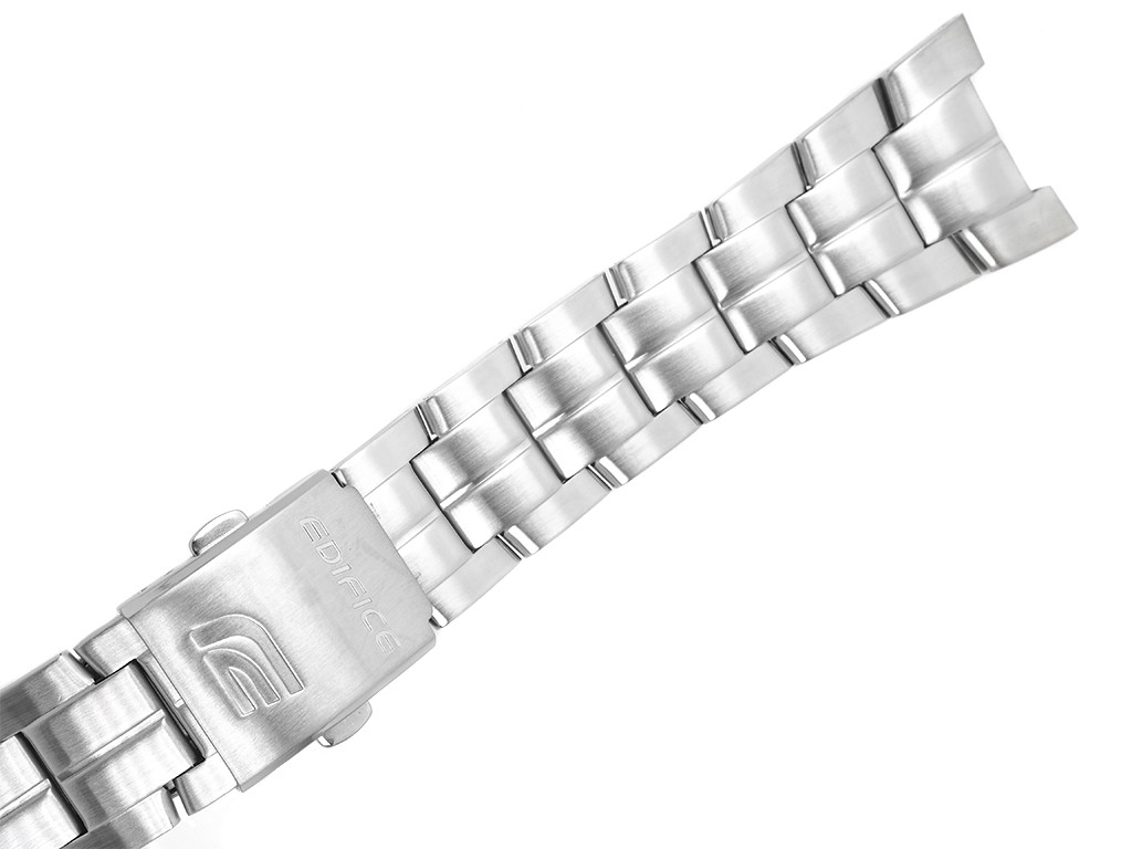 Oryginalna bransoleta do zegarka marki Casio Edifice EF-126D, wykonana ze stali nierdzewnej w kolorze srebrnym, na zapięciu wybity napis i logo Edifice.