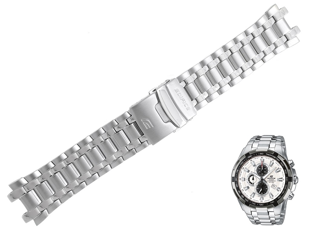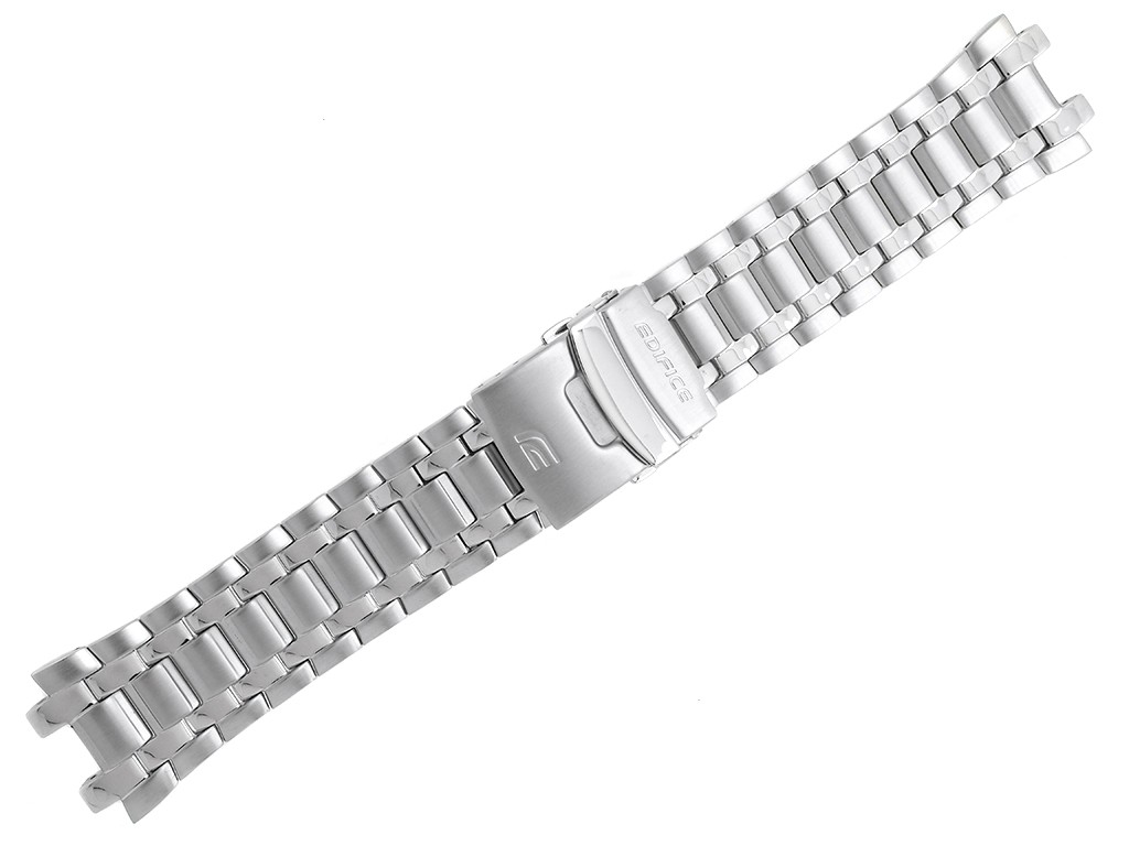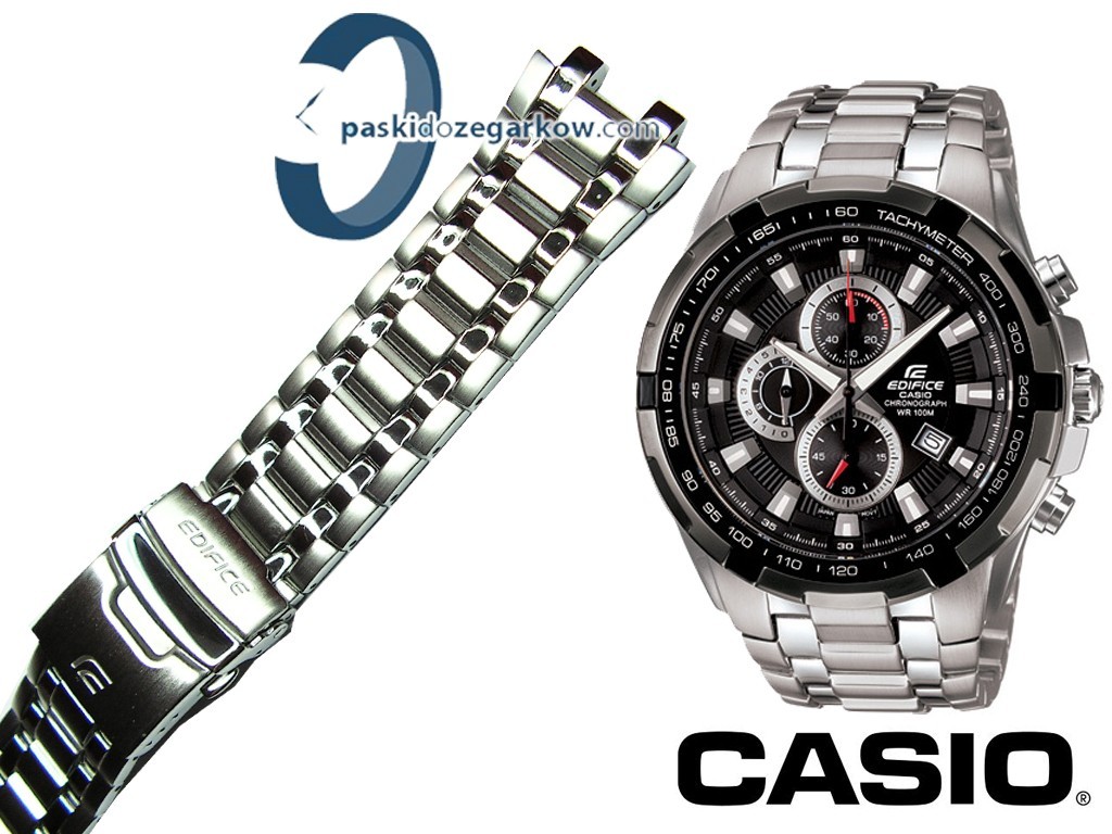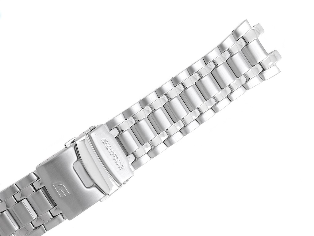 Oryginalna bransoleta do zegarka marki Casio Edifice EF-539D, wykonana ze stali nierdzewnej w kolorze srebrnym, na zapięciu wybity napis i logo Edifice.