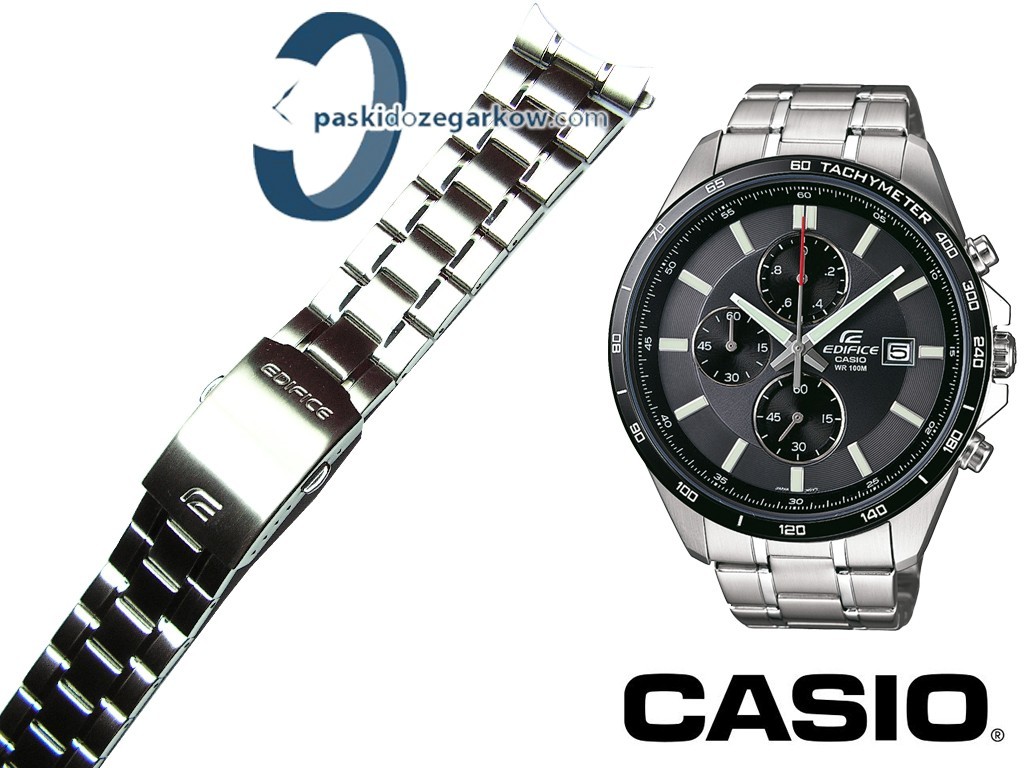 Wyświetl większe Oryginalna bransoleta do zegarka marki Casio Edifice EFR-512D, wykonana ze stali nierdzewnej w kolorze srebrnym z maskownicami, na zapięciu wybity napis i logo Edifice.