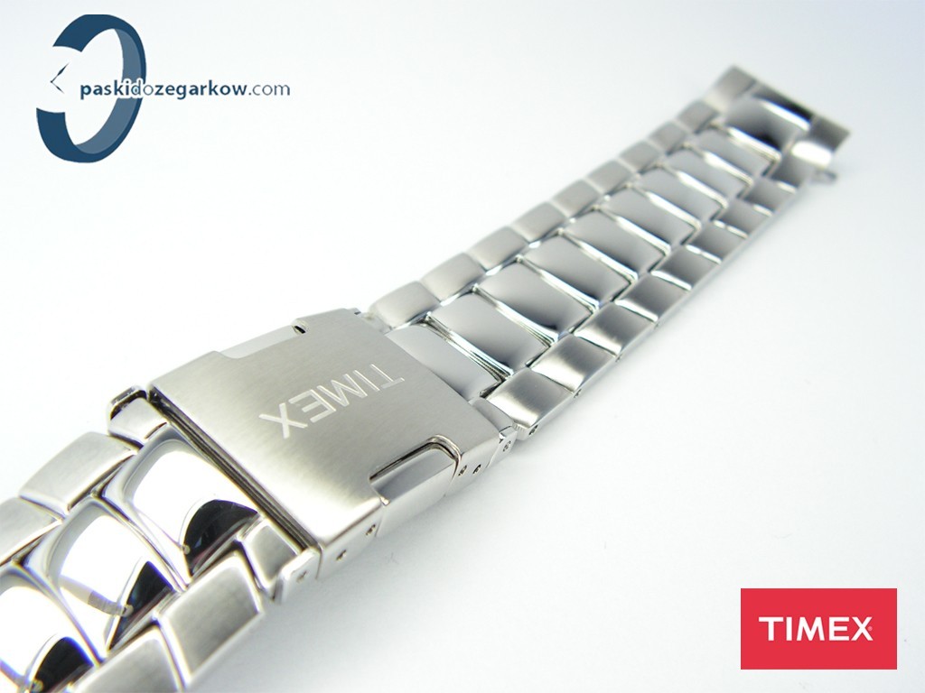 Oryginalna bransoleta do zegarka Timex do modelu T2M454 wykonana ze stali nierdzewnej, na zapięciu napis Timex, pasuje również do modelu T2M706.