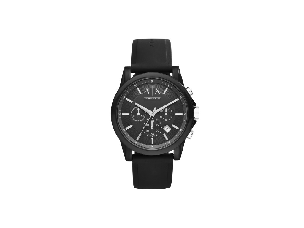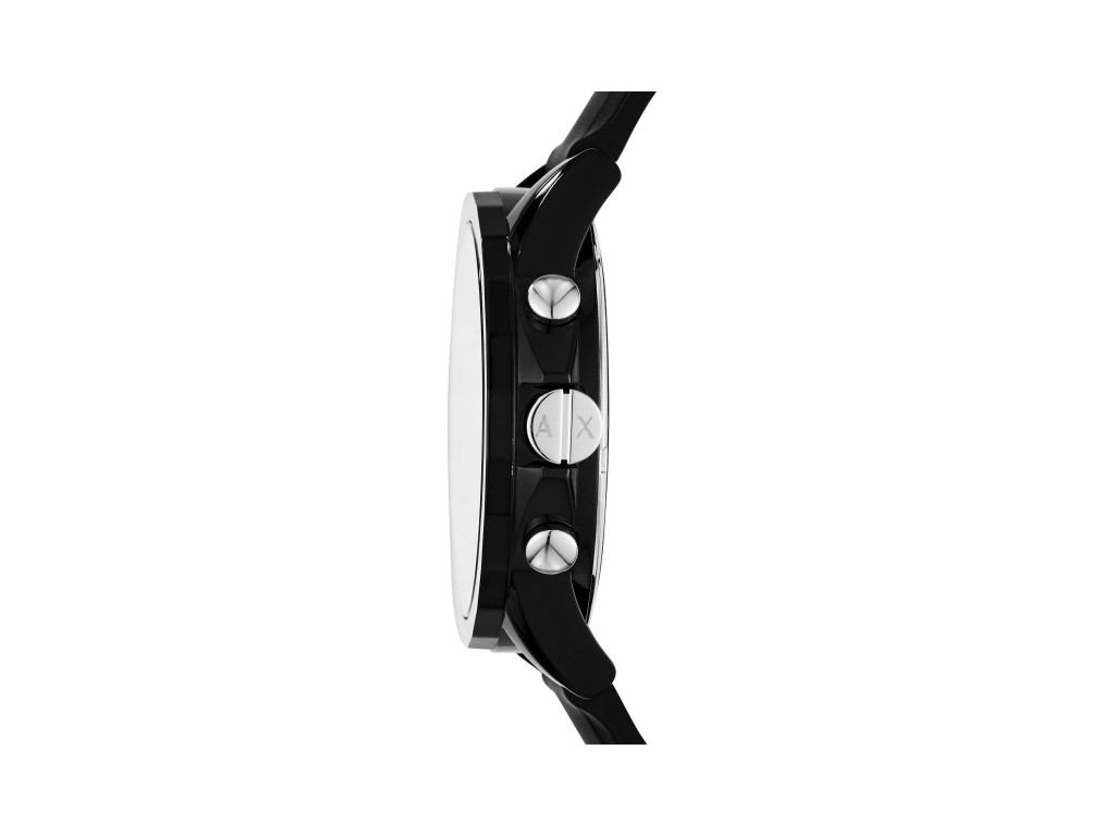Oryginalny pasek do zegarka ARMANI EXCHANGE AX1326, silikonowy w kolorze czarnym, gładki, na pasku napis Armani, sprzączka wykonana ze stali nierdzewnej w kolorze srebrnym sygnowana AX.