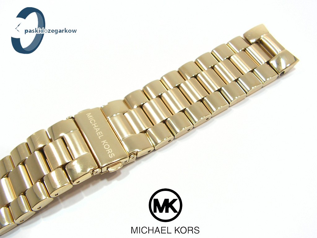 Oryginalna bransoleta do zegarka marki Michael Kors do modelu MK5706 wykonana ze stali nierdzewnej, powłoka w kolorze złotym, z maskownicami oraz teleskopami.