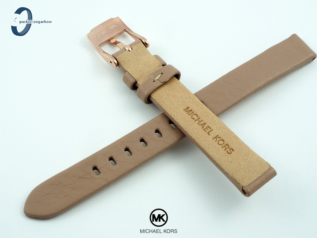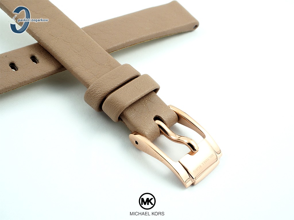 Oryginalny pasek do zegarka Michael Kors do modelu MK2752 wykonany ze skóry, w kolorze beżowym, sprzączka wykonana ze stali nierdzewnej w kolorze różowego złota.