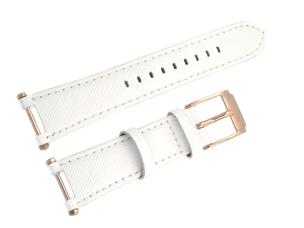 Pasek mocowany za pomocą wkrętów, w zestawie dwa oryginalne wkręty do zamocowania paska w kolorze różowego złota.
