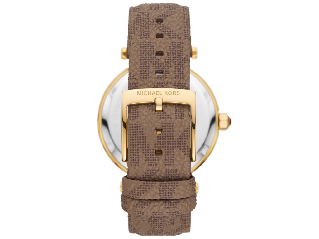 Oryginalny pasek do zegarka markiMichel Kors do modelu MK2973, wykonany ze skóry naturalnej w kolorze brązowym, na pasku logo MK, profilowany do koperty zegarka, sprzączka wykonana ze stali nierdzewnej w kolorze złotym z napisem Michael Kors.