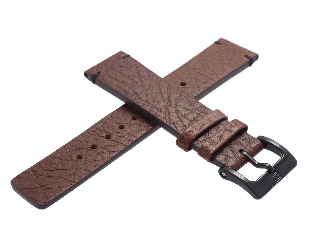Oryginalny pasek do zegarka marki Tommy Hilfiger TH1791383, wykonany ze skóry naturalnej w kolorze brązowym, sprzączka wykonana ze stali nierdzewnej w kolorze czarnym połysk z logo marki, bez przeszycia, na pasku faktura skóry.