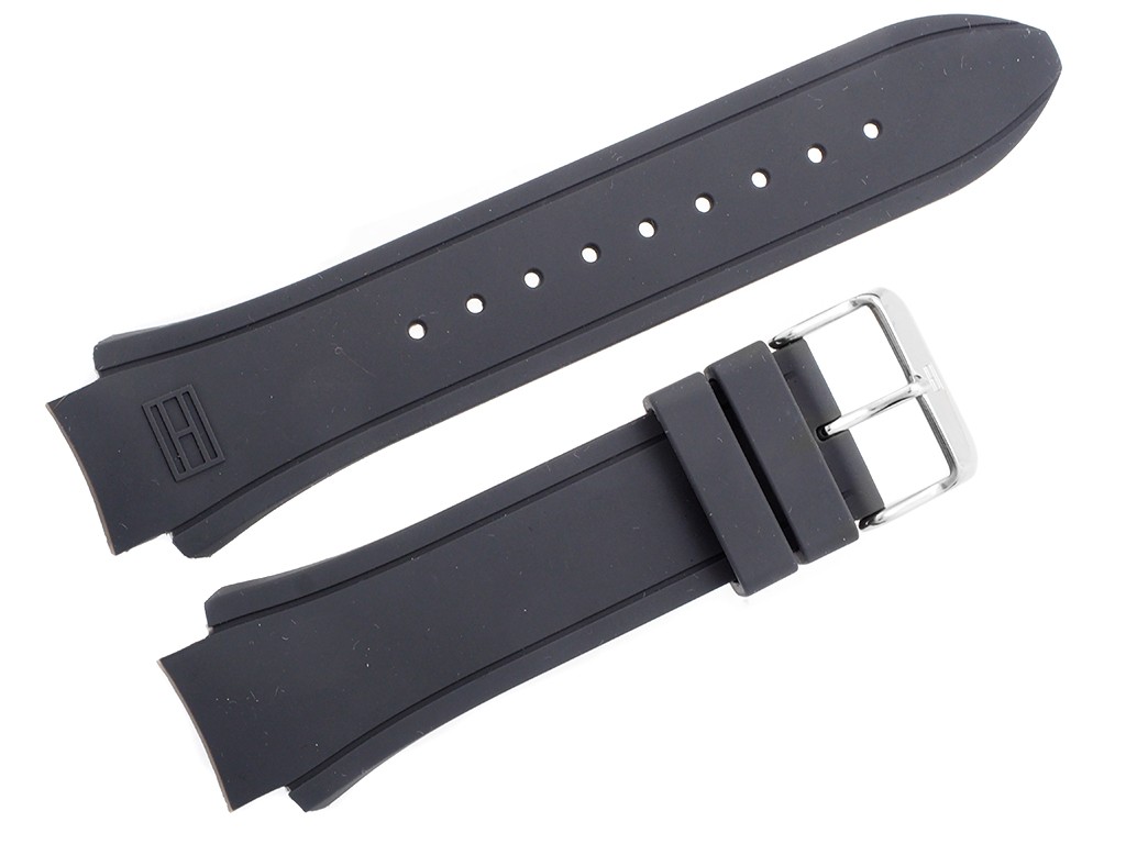 Oryginalny pasek do zegarka marki Tommy Hilfiger do modelu TH1790863, gumowy w kolorze szarym, sprzączka wykonana ze stali nierdzewnej w kolorze srebrnym połysk z logo marki.