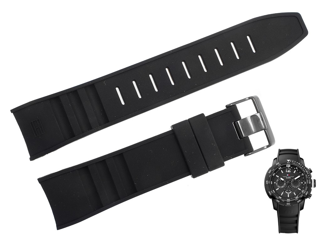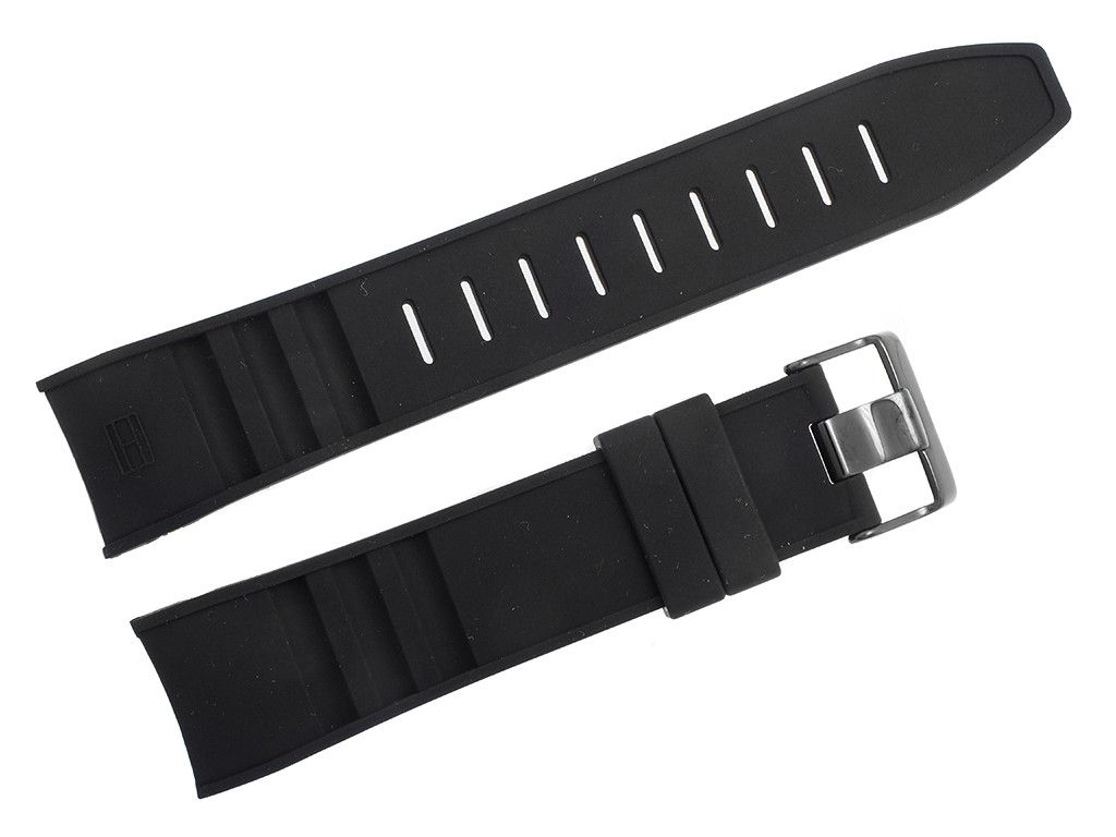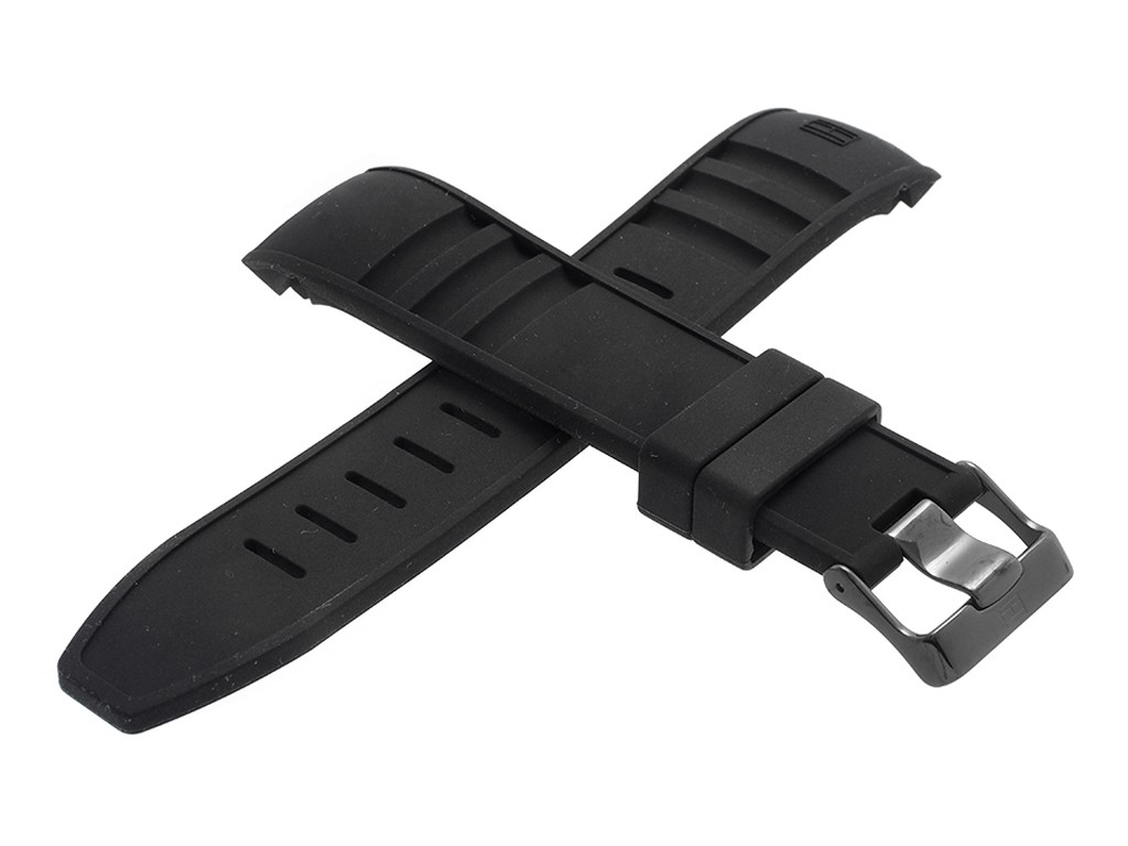 Oryginalny pasek do zegarka marki Tommy Hilfiger do modelu TH1790889, gumowy w kolorze czarnym, sprzączka wykonana ze stali nierdzewnej w kolorze czarnym połysk z logo marki.