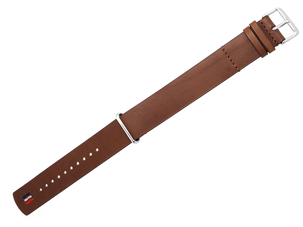 Oryginalny pasek do zegarka marki Tommy Hilfiger do modelu TH1791188, wykonany ze skóry naturalnej w kolorze brązowym, sprzączka w szlufka wykonane ze stali nierdzewnej w kolorze srebrnym połysk z logo marki, bez przeszycia, gładki, jednoczęściowy z podkładką.