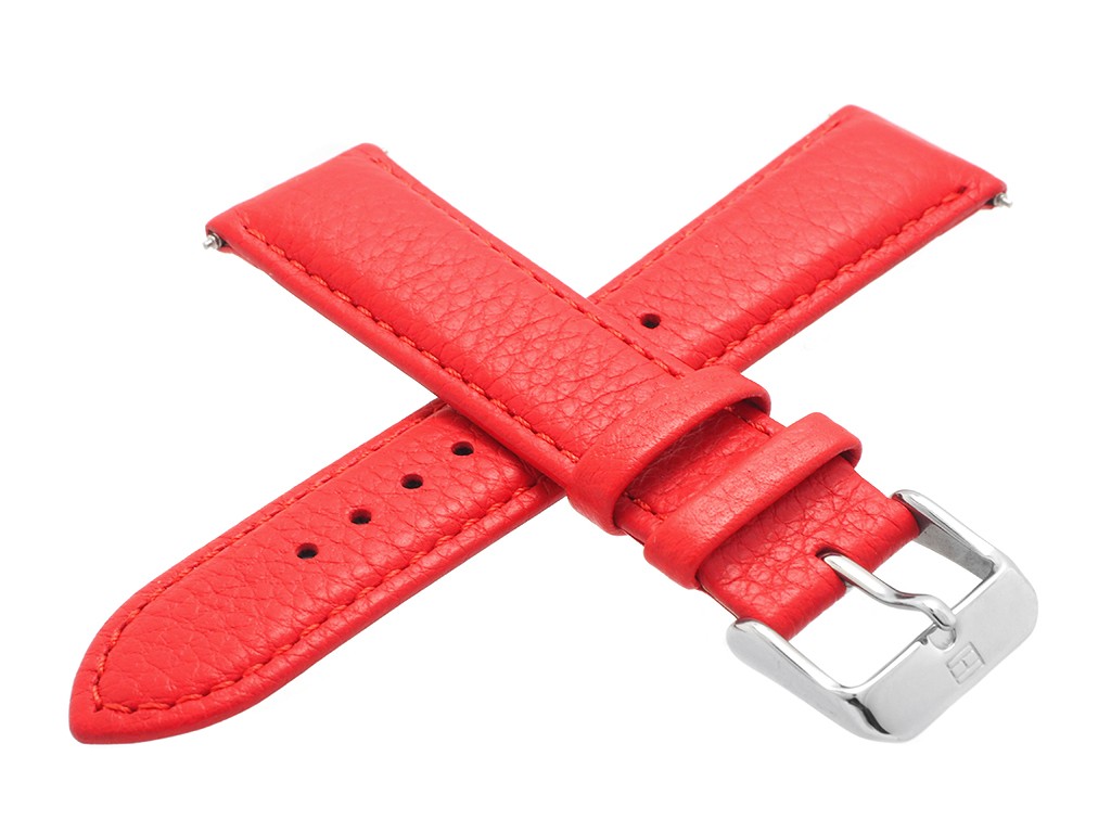 Oryginalny pasek do zegarka marki Tommy Hilfiger TH1781203, wykonany ze skóry naturalnej w kolorze czerwonym, sprzączka wykonana ze stali nierdzewnej w kolorze srebrnym połysk z logo marki, przeszyty, na pasku faktura skóry.