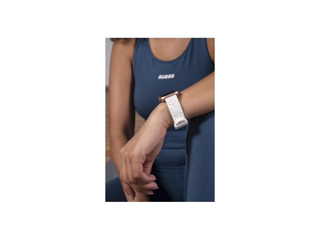 Pasek wykonany jest z wysokiej jakości silikonu w kolorze bialym z printem logo 4G.