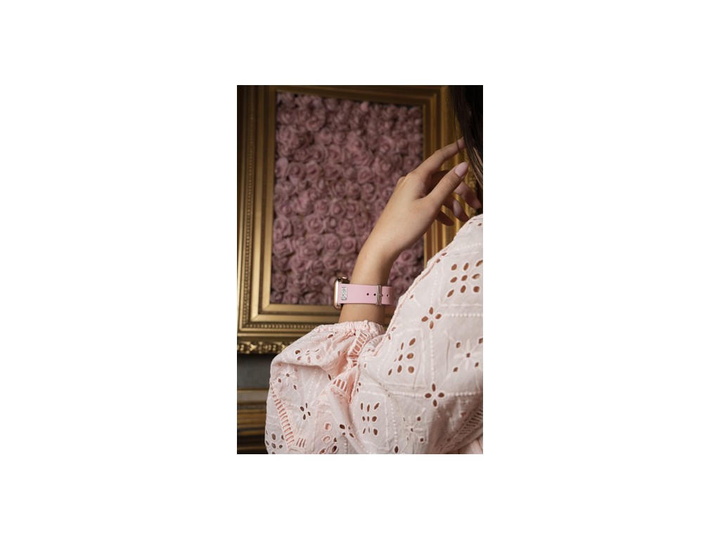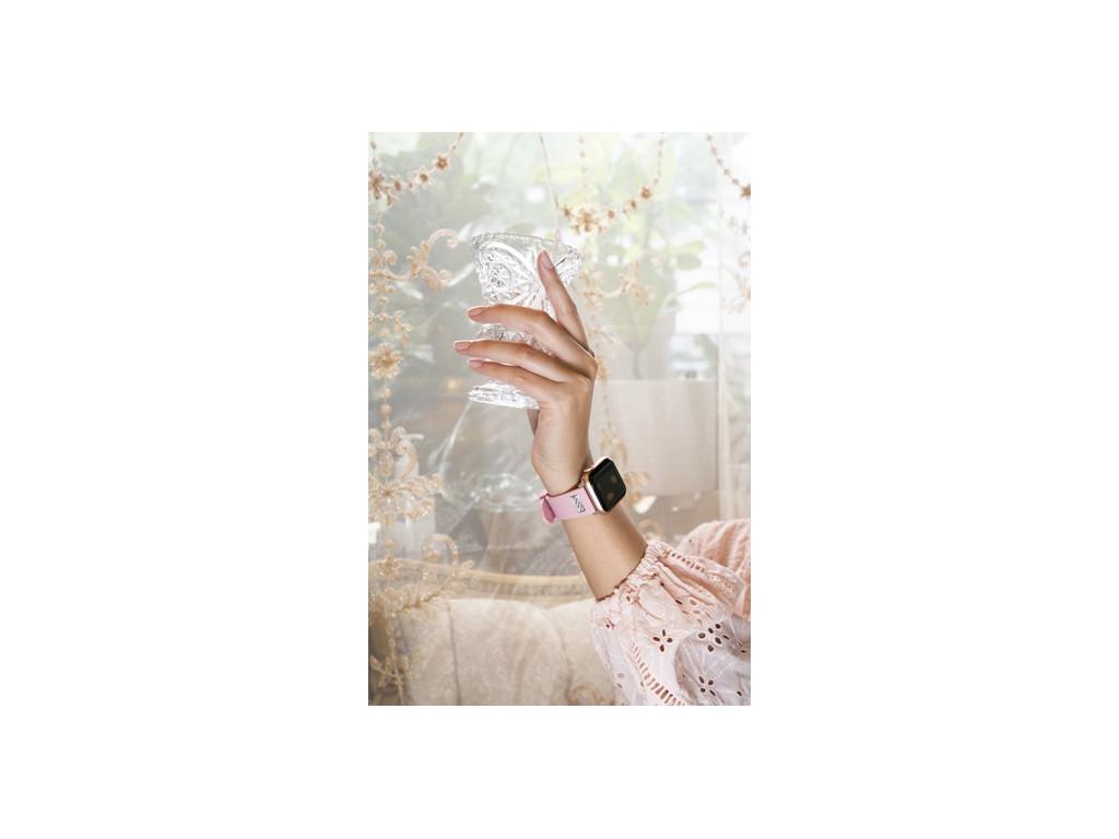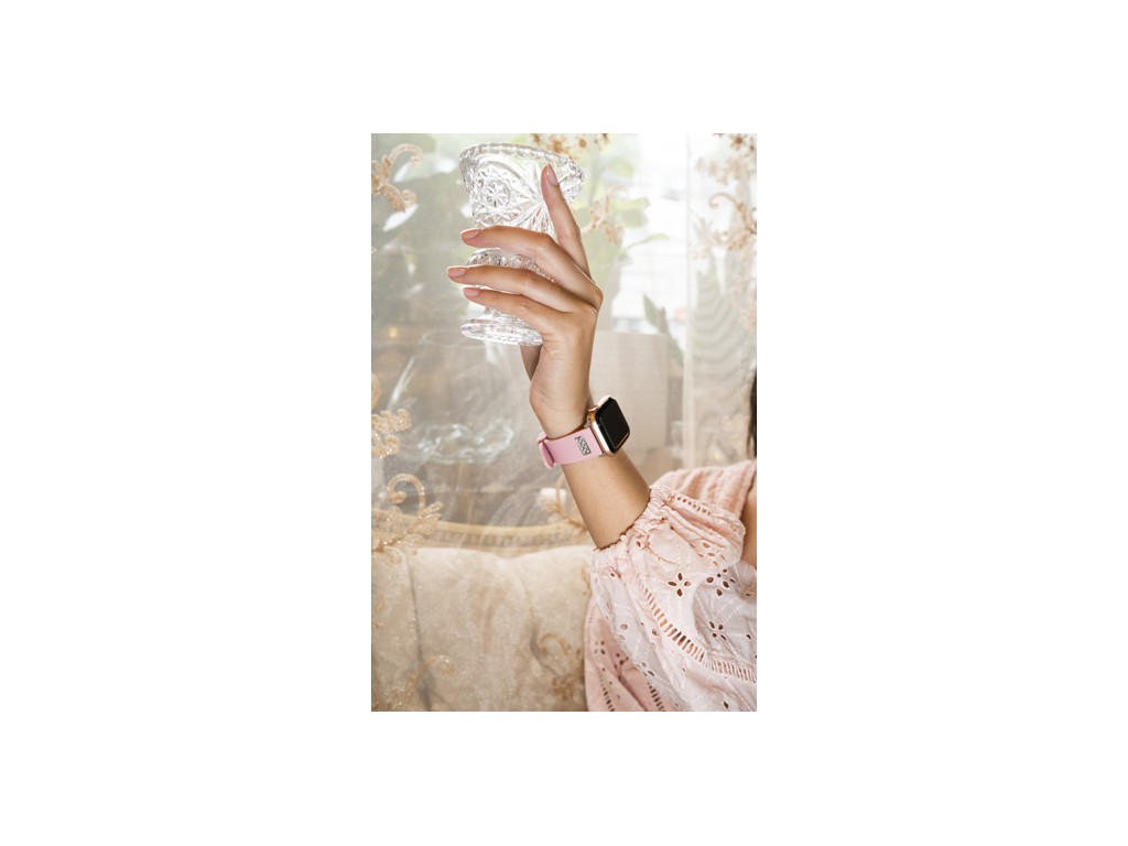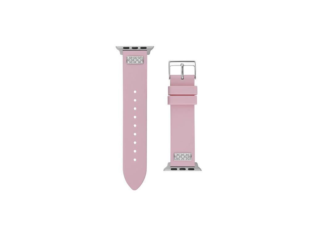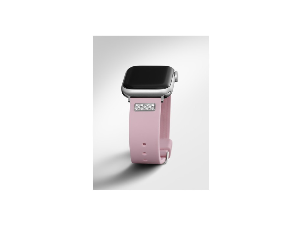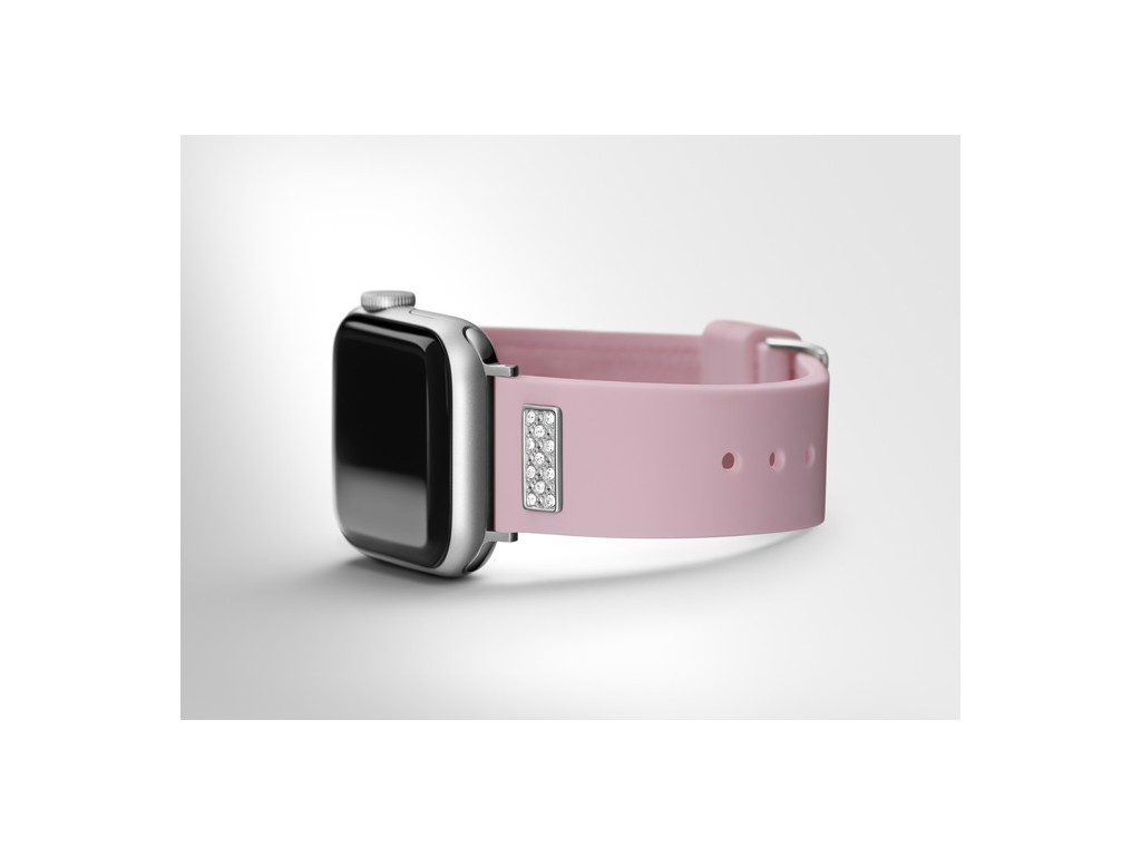 Pasek wykonany jest z wysokiej jakości silikonu w kolorze różowym z ozdobami z kryształków.
