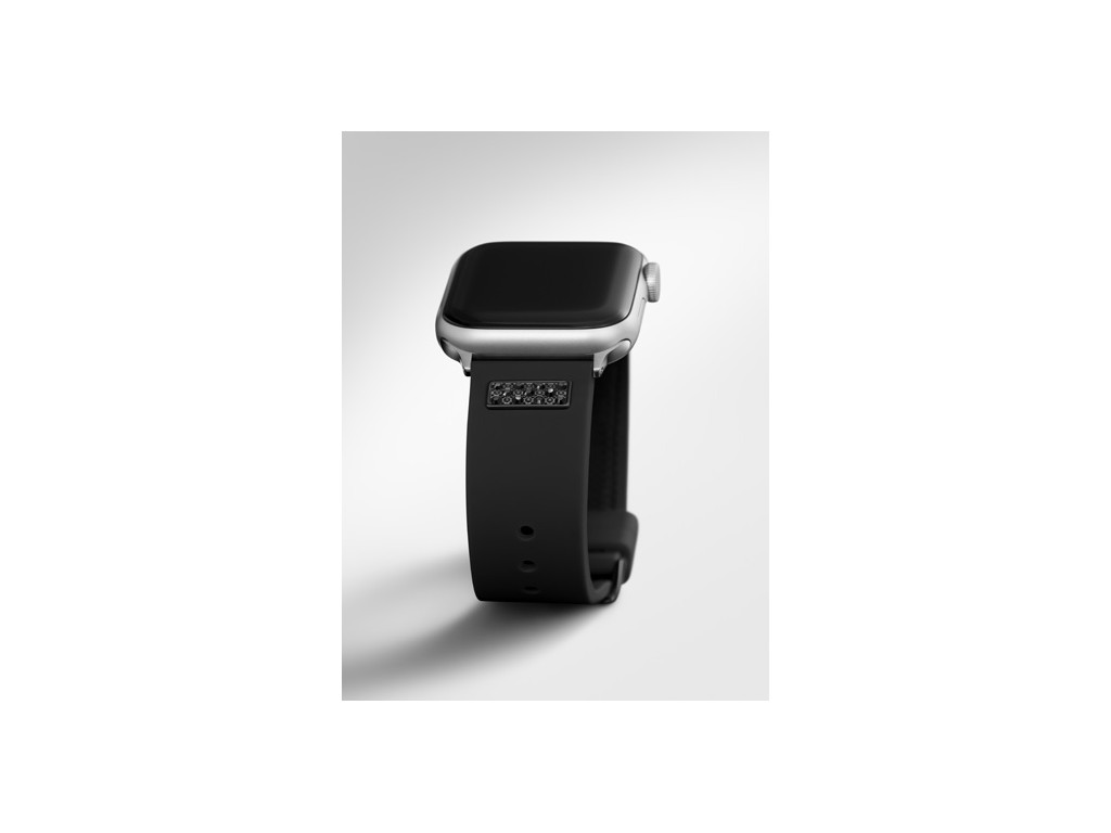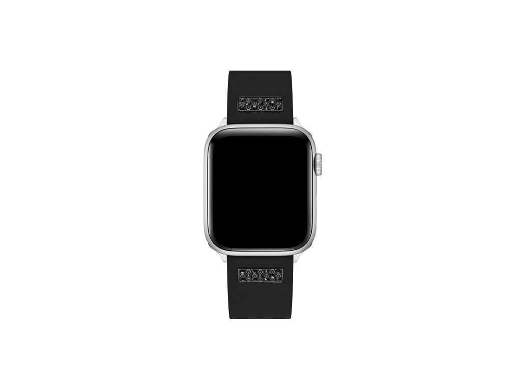 Pasek wykonany jest z wysokiej jakości silikonu w kolorze czarnym z ozdobami z kryształków.