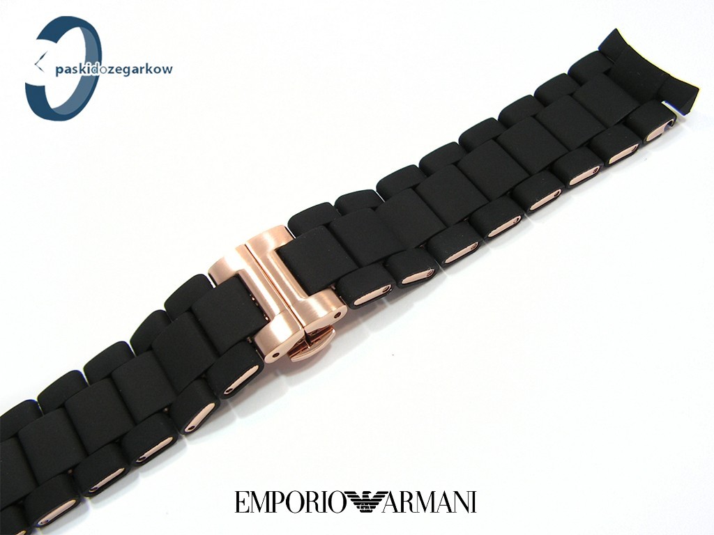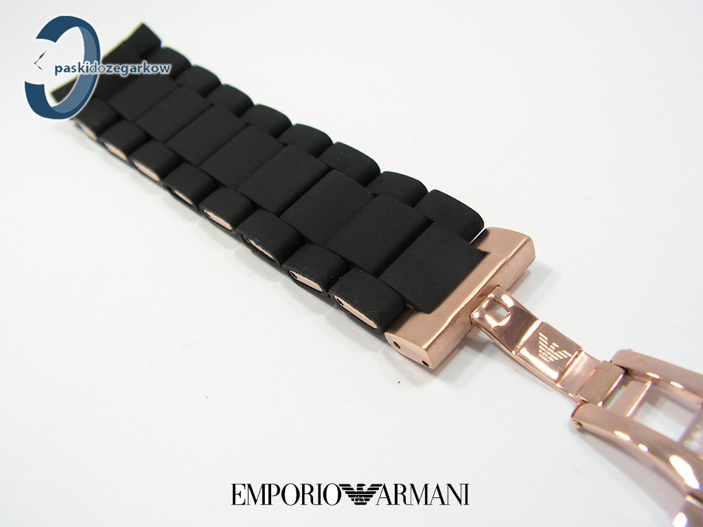 Oryginalna bransoleta do zegarka marki Armani do modelu AR5905 stalowo-gumowa w kolorach czarno-złota, złoto w kolorze różowym, zapięcie motylkowe.