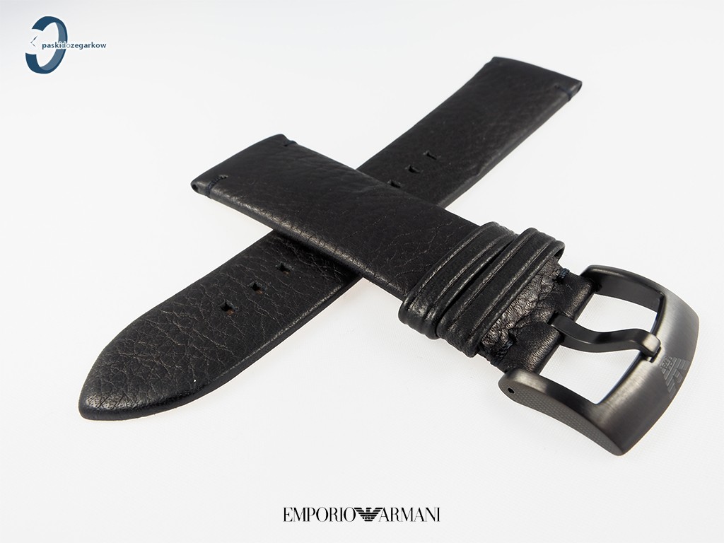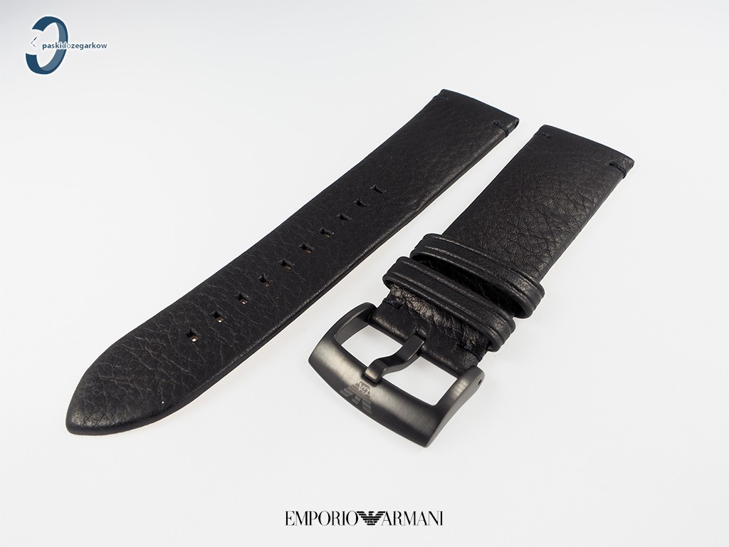 Oryginalny pasek do zegarka Emporio Armani AR2461 skórzany w kolorze czarnym, gładki, bez przeszycia, sprzączka wykonana ze stali nierdzewnej w kolorze czarnym.