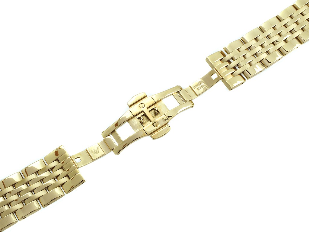 Oryginalna bransoleta do zegarka Armani do modelu AR1893 wykonana ze stali nierdzewnej w kolorze złotym. Szerokość bransolety przy mocowaniu do zegarka wynosi 22 mm, mocowana na teleskopy, pasuje do innych zegarków z rozmiarem koperty 22 mm.