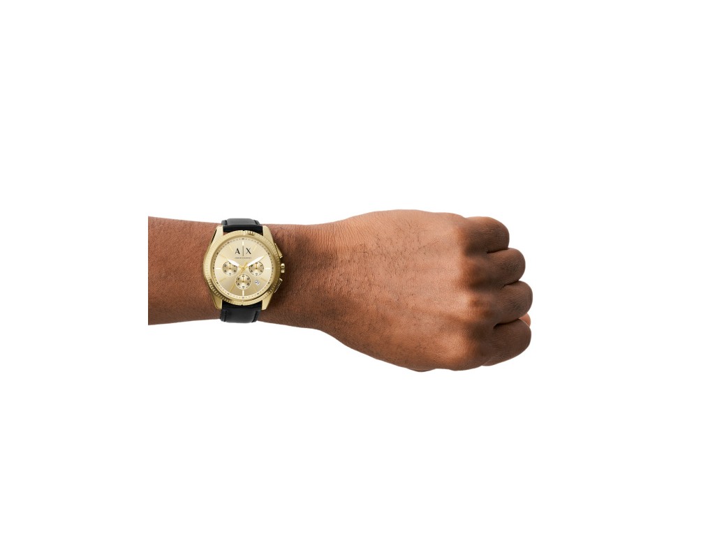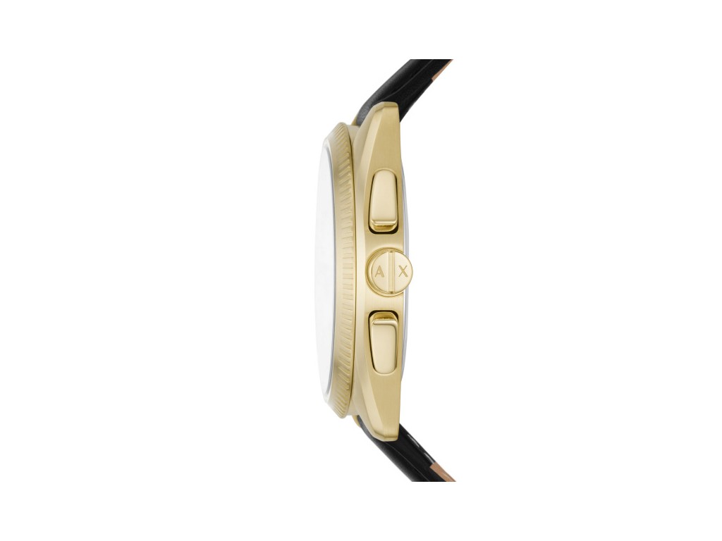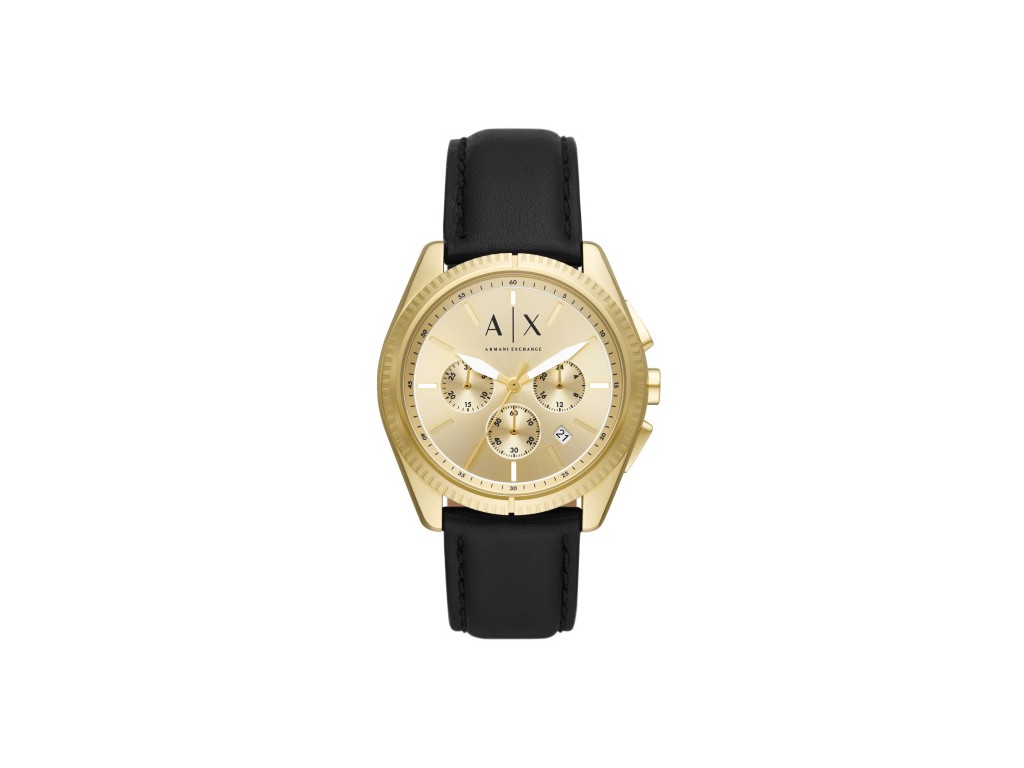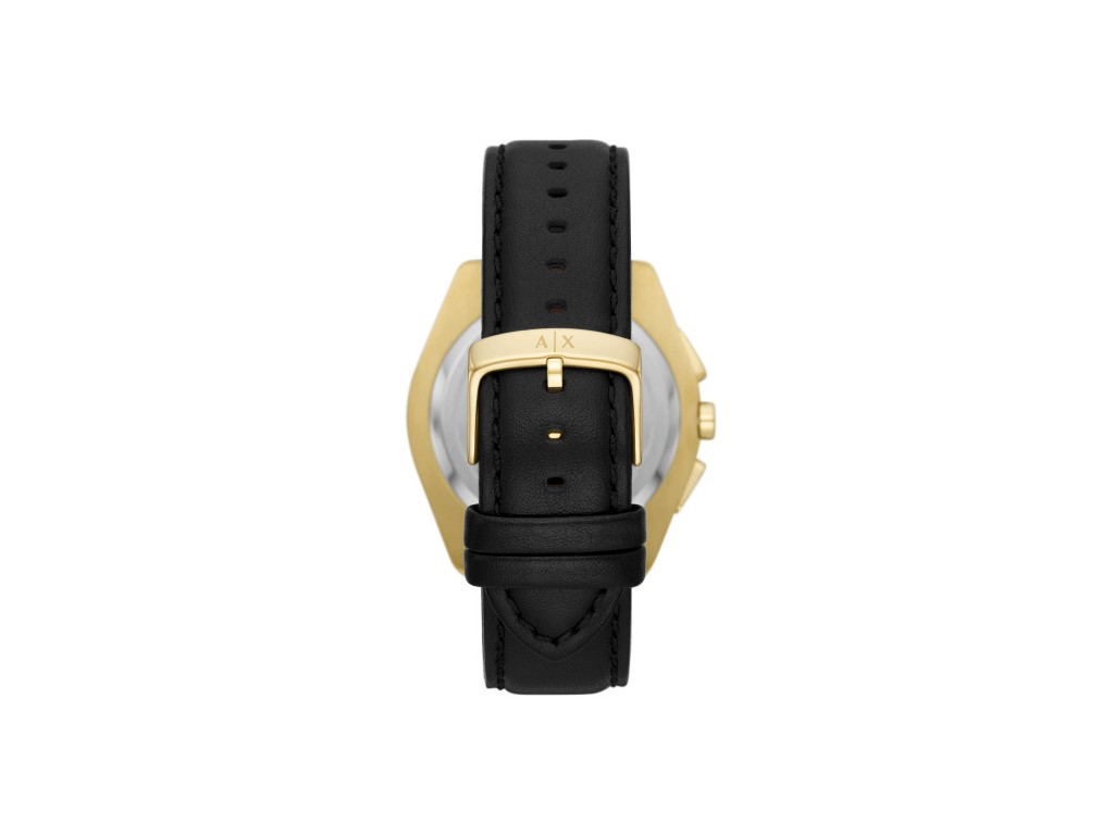 Oryginalny pasek do zegarka ARMANI EXCHANGE Giacomo AX2861 skórzany w kolorze czarnym, gładki, przeszycie w kolorze paska, sprzączka wykonana ze stali nierdzewnej w kolorze złotym sygnowane AX.