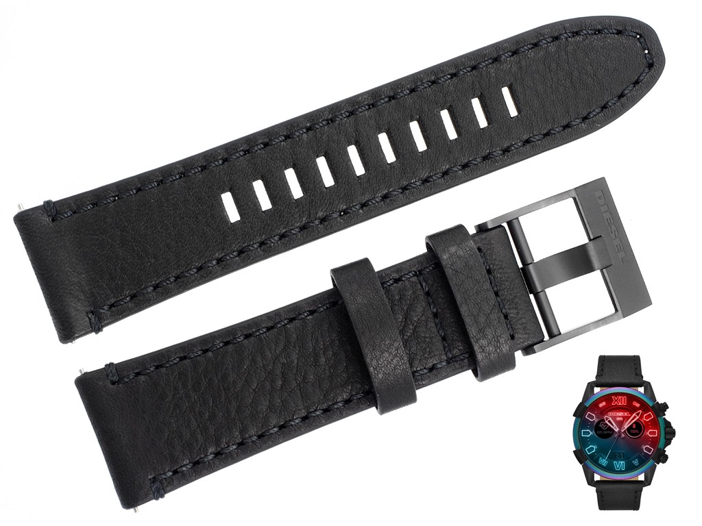 Oryginalny pasek do zegarka marki Diesel do modelu DZT2013, wykonany ze skóry naturalnej w kolorze czarnym, sprzączka wykonana ze stali nierdzewnej w kolorze czarnym matowym z napisem Diesel.