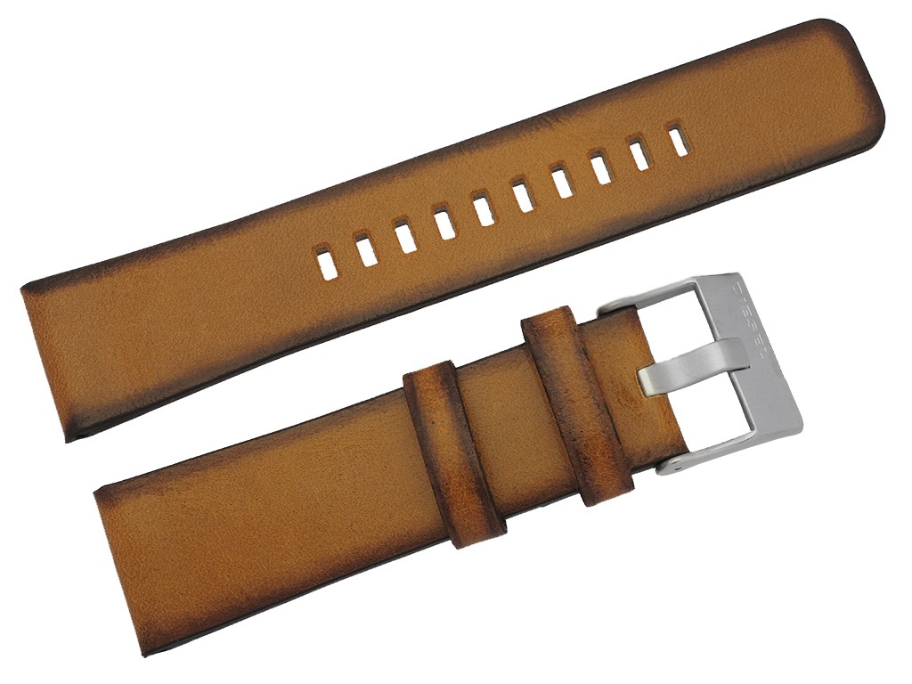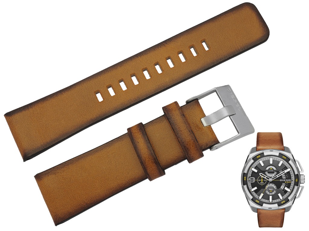 Oryginalny pasek do zegarka marki Diesel do modelu DZ4393, wykonany ze skóry naturalnej w kolorze brązowym, bez przeszycia, sprzączka wykonana ze stali nierdzewnej w kolorze srebrnym matowym z napisem Diesel.