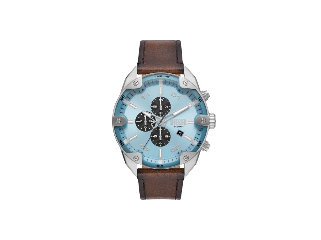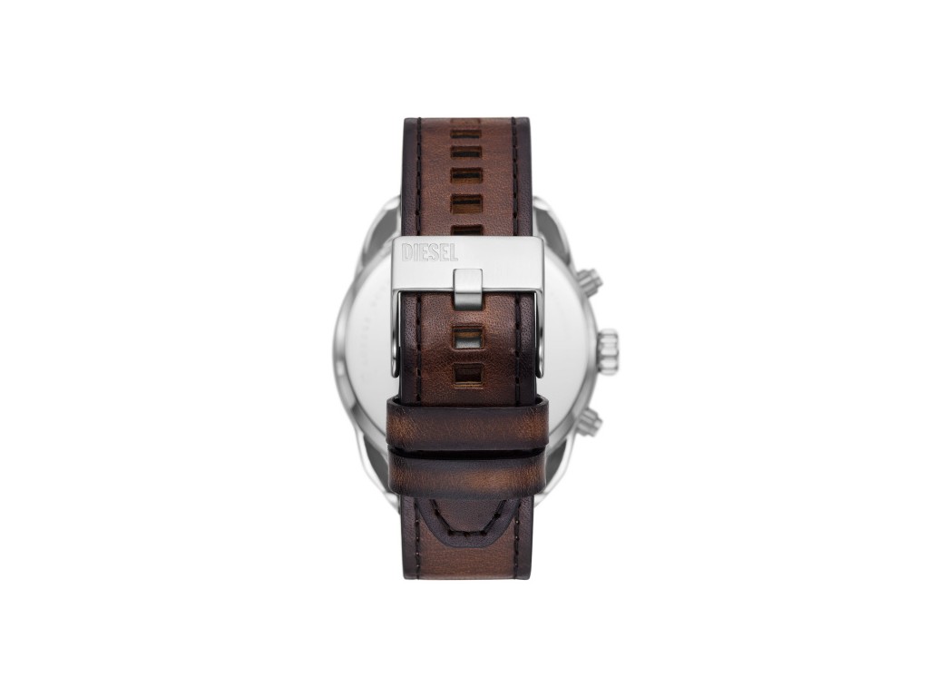 Oryginalny pasek do zegarka marki DIESEL do modelu DZ4606, wykonany ze skóry naturalnej w kolorze brązowym, boki paska czarne przeszyty czarną nicią, sprzączka wykonana ze stali nierdzewnej w kolorze srebrnym matowym z napisem Diesel.