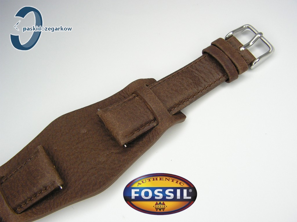 Oryginalny pasek do zegarka marki Fossil do modelu CH2795 skórzany, gładki, kolor brązowy, z podkładką, zapinany na teleskopy, dwa stalowe teleskopy w zestawie, szerokośc przy teleskopie 18 mm, pasuje do innych modeli z rozstawem koperty 18 mm, przeszyty brązową nitką, sprzączka stalowa z napisem Fossil.