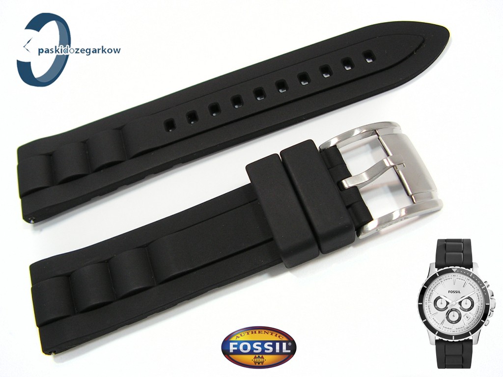 Oryginalny pasek do zegarka marki Fossil do modelu CH2924 CH2925 silikonowy czarny, sprzączka stalowa w kolorze srebrnym, mocowany na teleskopy, dwa stalowe teleskopy w zestawie, szerokość paska 22 mm, pasuje do innych zegarków z rozmiarem koperty 22 mm.
