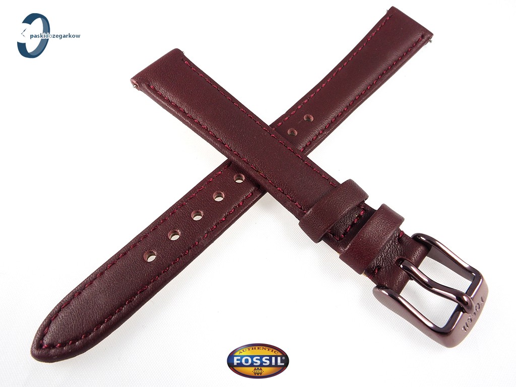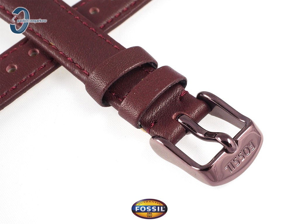 Oryginalny pasek do zegarka marki Fossil Jacqueline do modelu ES4099, wykonany ze skóry naturalnej w kolorze bordowym, gładki, matowy, przeszyty, sprzączka wykonana ze stali nierdzewnej w kolorze bordowym.