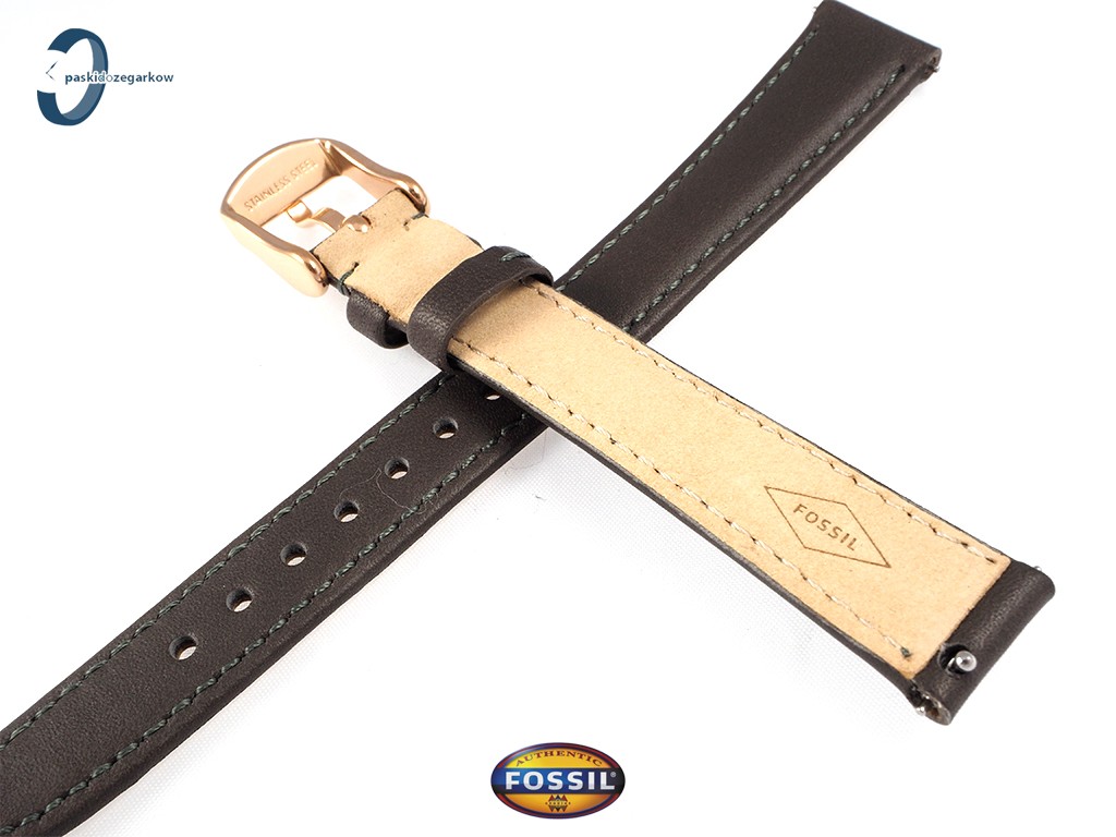 Oryginalny pasek do zegarka Fossil do modelu ES3707 skórzany, w kolorze ciemnym szarym, gładki, przeszyty, matowy, sprzączka paska wykonana ze stali nierdzewnej w kolorze różowe złoto.