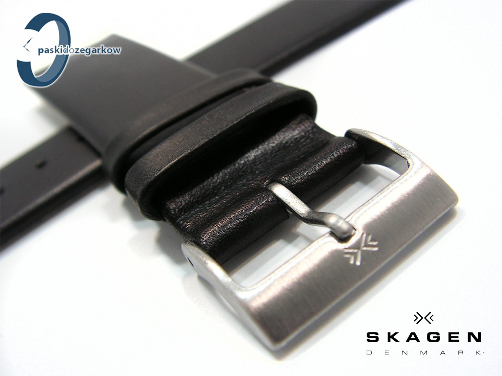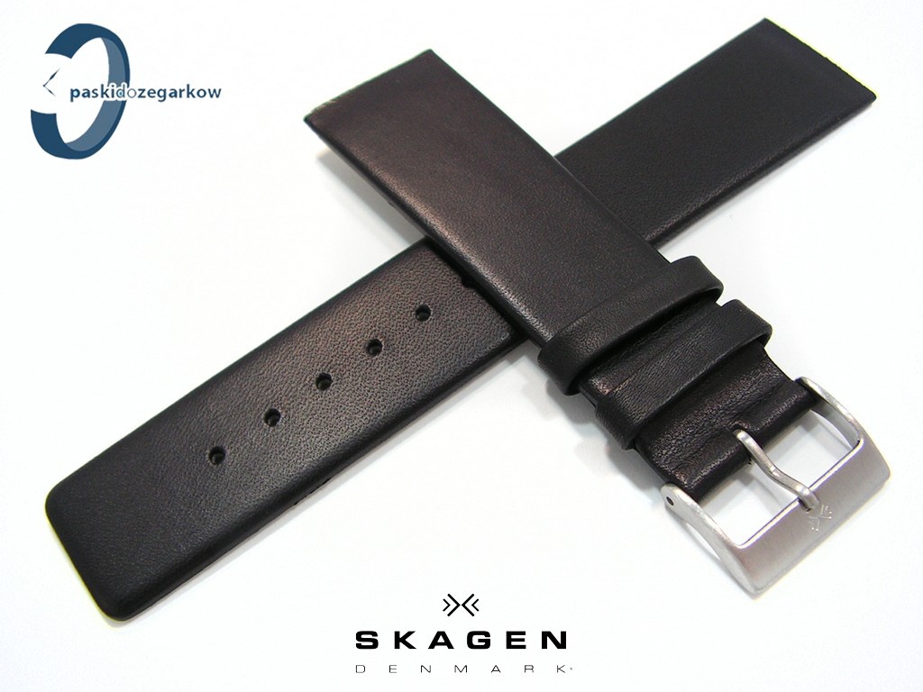 Oryginalny pasek do zegarka marki SKAGEN do modelu SKW6104 skórzany w kolorze czarnym, gładki, bez przeszycia, bez wypełnienia, mocowany na śrubki, które są w zestawie, sprzączka stalowa w kolorze srebrnym.