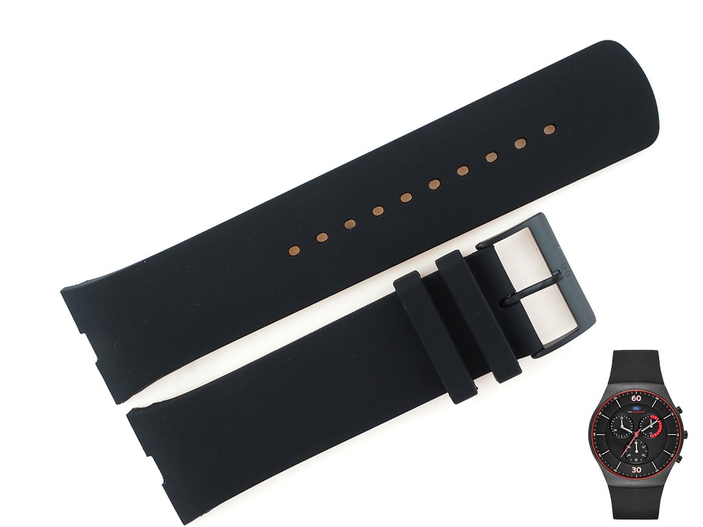 Pasek do zegarka wykonany jest z silikonu w kolorze czarnym. Sprzączka paska wykonana ze stali nierdzewnej w kolorze czarnym.