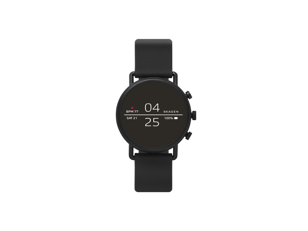 Oryginalny pasek do zegarka marki Skagen do modelu SKT5100 silikonowy w kolorze czarnym, gładki, sprzączka wykonana ze stali nierdzewnej w kolorze czarnym.