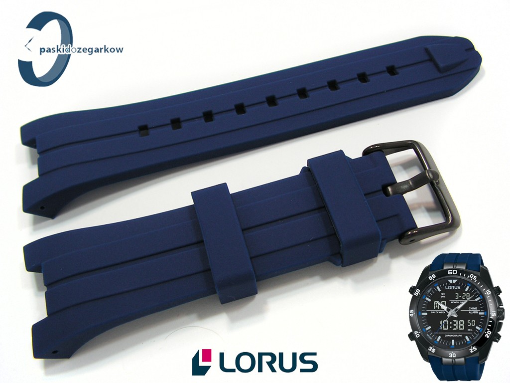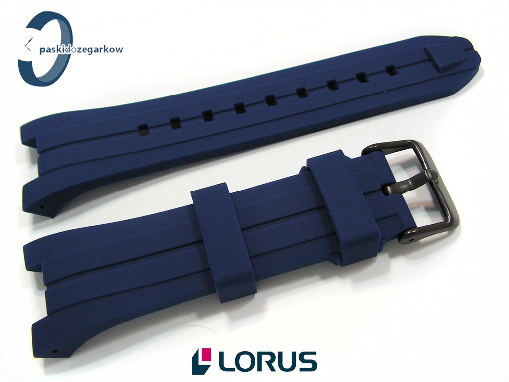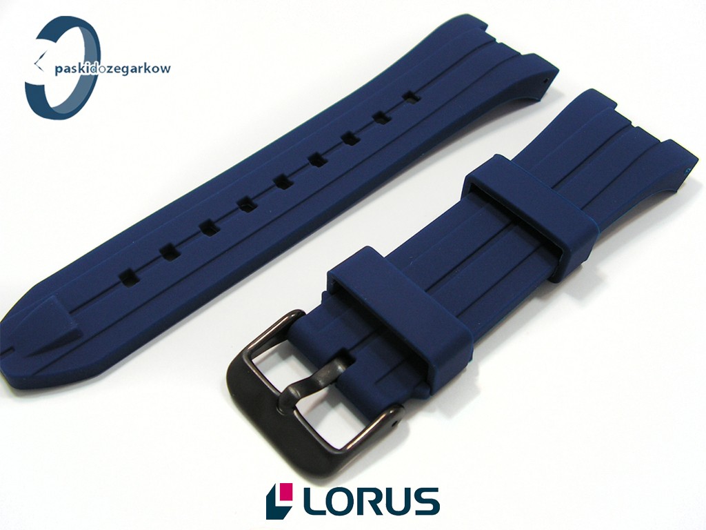Oryginalny pasek do zegarka Lorus RW631AX9, RW617AX9 gumowy niebieski, sprzączka wykonana ze stali nierdzewnej w kolorze czarnym.
