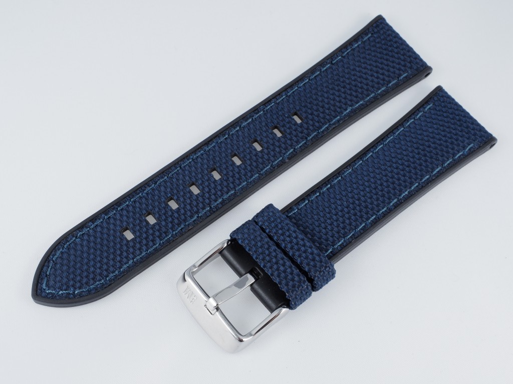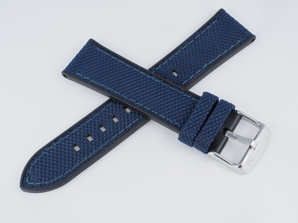 Pasek do zegarka włoskiego producenta Morellato NET wykonany z gumy w kolorze czarnym oraz granatowego materiału z fakturą. Pasek jest odporny na zamoczenie w wodzie. Sprzączka paska do zegarka wykonana jest ze stali nierdzewnej w kolorze srebrnym.